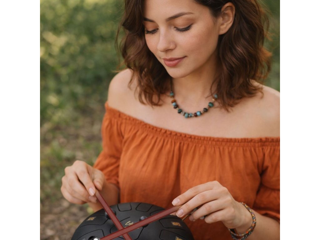 Dzięki 11 tonom możesz tworzyć harmonijne kompozycje nawet bez znajomości nut. Stal z domieszką miedzi zapewnia czyste, długie wybrzmienie i stabilność stroju. Wystarczy delikatne uderzenie pałeczką lub gra palcami z użyciem nakładek, aby przestrzeń wypełniła się spokojną wibracją sprzyjającą koncentracji i odprężeniu. To doskonały wybór dla nauczycieli rytmiki, terapeutów, instruktorów jogi, a także rodziców rozwijających muzyczny talent dziecka.