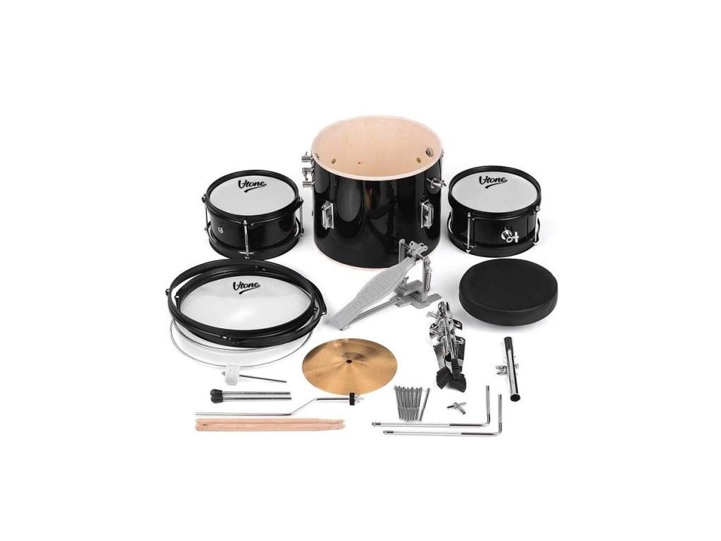 V-TONE VD JUNIOR BK to niedrogi zestaw perkusyjny dla dzieci. Zawiera bęben basowy ze stopką i werbel ze środkiem, tom i talerz crash. W zestawie znajduje się również okrągły stołek perkusyjny, klucz do strojenia i pałeczki. Jest to akustyczny zestaw perkusyjny przeznaczony przede wszystkim do nauki. Na zestawie V-TONE VD Junior możesz przyswoić sobie właściwe nawyki potrzebne do dalszej gry. Bębny są wykonane z drewna topolowego, które ma doskonałe właściwości akustyczne, natomiast talerz jest wykonany ze stali. Zestaw można dopasować do indywidualnych preferencji każdego dziecka. Jest to mały i stosunkowo niedrogi zestaw perkusyjny.