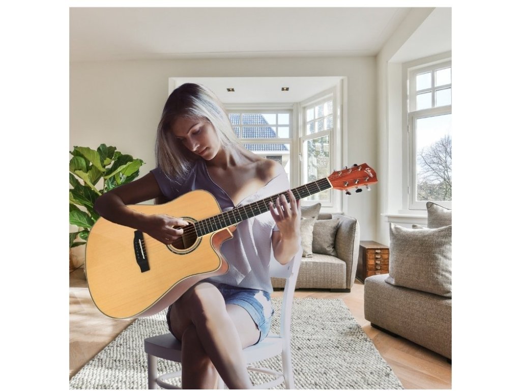 Dzięki niskiej wadze i kompaktowym wymiarom gitara jest łatwa w transporcie i przechowywaniu, co czyni ją idealnym towarzyszem na koncerty i w podróże. Jej funkcjonalność i niezawodność docenią muzycy, na przykład lokalni artyści, nauczyciele muzyki lub członkowie zespołów rockowych. Niezależnie od tego, czy grasz w domowym studiu, na scenie w małym klubie, czy na dużych koncertach, ta gitara elektroakustyczna spełni wszystkie Twoje oczekiwania i pomoże Ci rozwijać Twoją muzyczną pasję.