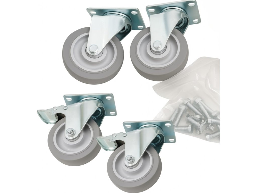 - Kółka: 4 obrotowe, 2 z hamulcem
