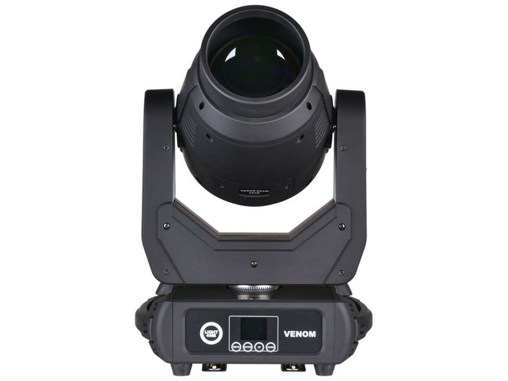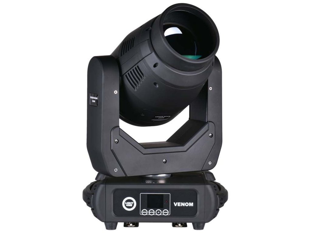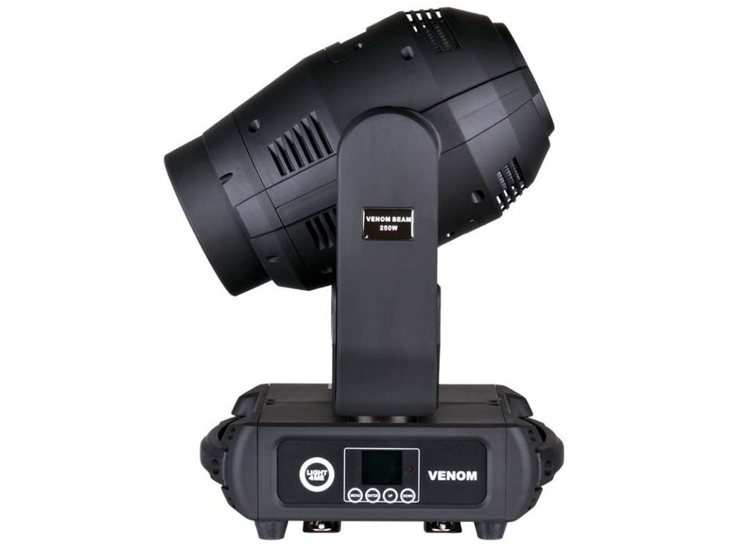 Light4Me Venom Beam 250W V2 to profesjonalna ruchoma głowa typu beam, wyposażona w wydajny moduł LED o mocy 250W emitujący wiązkę światła o kącie zaledwie 2,2°. Dzięki rozbudowanym funkcjom i wbudowanym efektom to dynamiczne światło LED jest doskonałym narzędziem do oświetlenia scenicznego. Świetnie nadaje się na koncerty muzyczne i różnego rodzaju występy, sprawdzi się w domach kultury, jak również w klubach tanecznych i na dyskotekach. Znajdzie zastosowanie również jako oświetlenie dla zespołów weselnych i mobilnych DJ-ów.