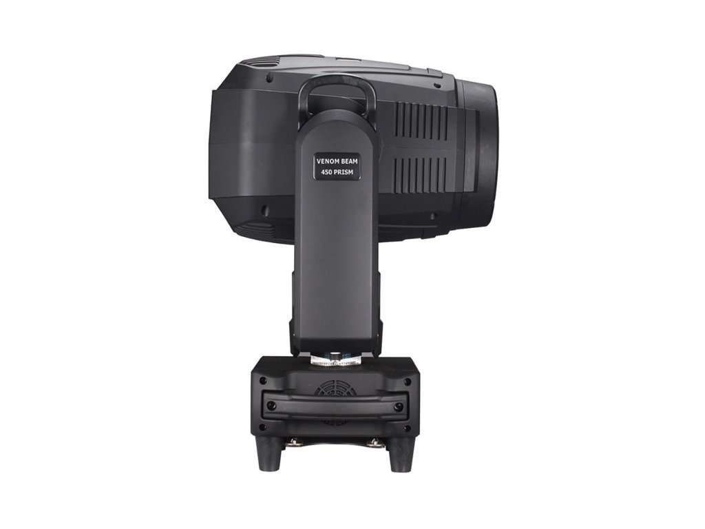 LIGHT4ME VENOM BEAM 450 PRISM to profesjonalna głowica ruchoma LED wyposażona w wydajne źródło światła o mocy 450 W, które zapewnia skoncentrowaną wiązkę o kącie 3°. Głowica jest wyposażona w koło kolorów z 8 filtrami i dwoma niezależnymi tarczami gobo, z których jedna zawiera 14 statycznych gobo, a druga 8 obrotowych. Ponadto dostępne są dwa pryzmaty, które można obracać i nakładać na siebie, co pozwala na tworzenie różnorodnych efektów świetlnych. Głowica ta idealnie nadaje się do zastosowań w przedstawieniach muzycznych i teatralnych, jak również w klubach tanecznych, dyskotekach lub podczas wesel.