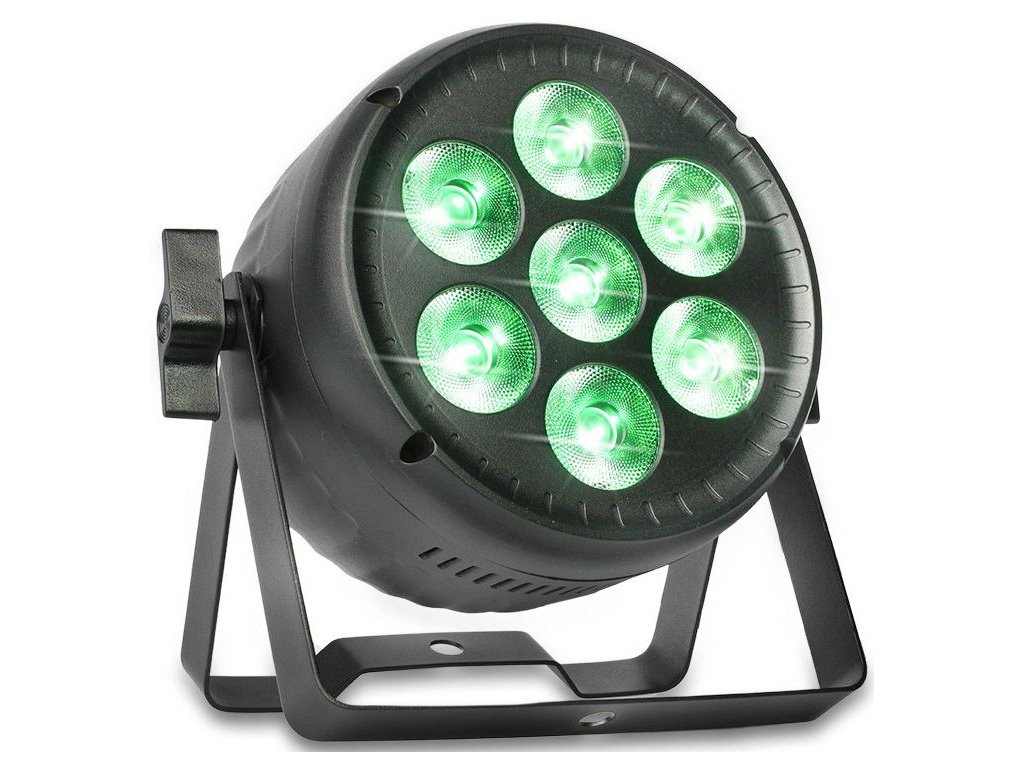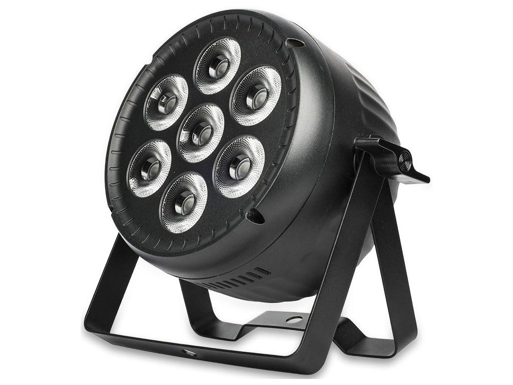 Light4me Venom Par 7x30 to kompaktowy reflektor LED PAR wyposażony w 7 wysokowydajnych diod LED o mocy 30W obsługujących paletę barw RGBW. Reflektor idealnie nadaje się do tworzenia oprawy świetlnej w salach weselnych, na studniówkach, uroczystościach, imprezach sylwestrowych oraz na scenie podczas koncertów klubowych i imprez DJ-skich. Świetnie sprawdzi się również w dyskotekach, ale także w hotelach i restauracjach do dekoracji wewnętrznych elementów architektonicznych i wnętrz.