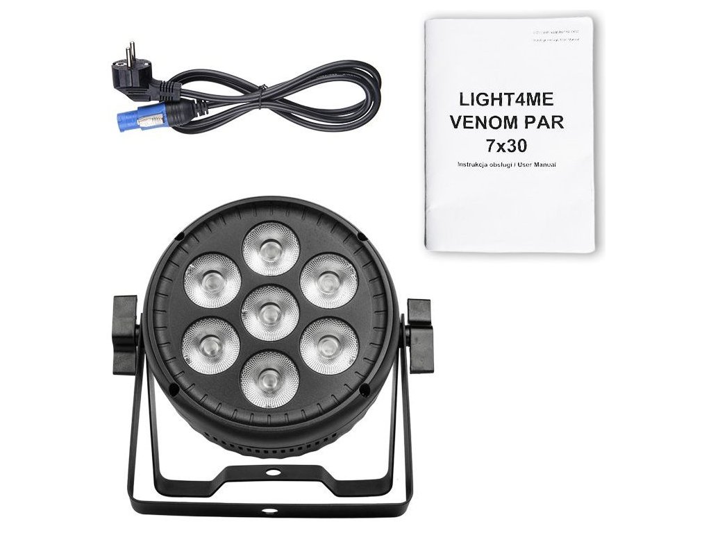 - W zestawie: VENOM PAR 7x30, kabel zasilający, uchwyt montażowy, krótka instrukcja