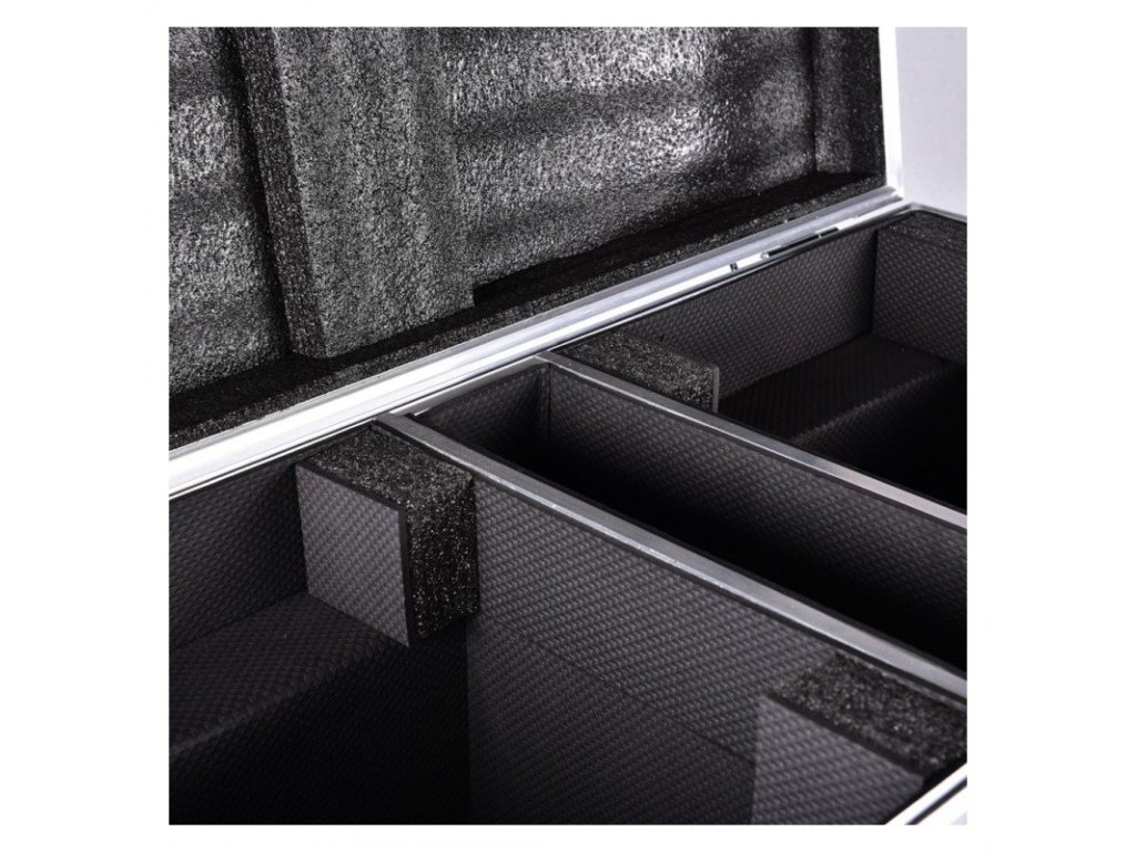 Case na ruchome głowy Light4Me Venom Spot 150 Spy to profesjonalna i bardzo solidnie wykonana skrzynia transportowa Case4Me z miejscem na 2 jednostki Venom Spot 150 Spy lub inne urządzenia o wymiarach zbliżonych do tych głów. Pojemnik wykonany jest z grubej sklejki o grubości 7 mm, pomalowanej specjalną wodoodporną farbą. Jego krawędzie są wzmocnione profilami aluminiowymi. W rogach znajdują się kulki, chromowane osłony, które dodatkowo zabezpieczają konstrukcję i chronią otoczenie skrzyni dzięki eliminacji ostrych krawędzi. Pokrywa jest zabezpieczona przed przypadkowym otwarciem dwoma solidnymi zamkami motylkowymi. Można ją otworzyć z jednej strony do pozycji pionowej, a odpowiedni kąt nachylenia zapobiega jej upadkowi na użytkownika, zapewniając łatwy i wygodny dostęp do przechowywanych urządzeń. Wewnątrz znajdują się dwie komory idealnie dopasowane do głów, oddzielone przegrodą na okablowanie i inne akcesoria. Wnętrze obudowy wyściełane jest miękką pianką techniczną, dzięki której doskonale chroni przechowywany sprzęt przed uszkodzeniami. Na bokach skrzyni znajdują się wygodne uchwyty do przenoszenia pojemnika, a na spodzie cztery obrotowe kółka, w tym dwa z blokadą. To skrzynia transportowa na miarę do ruchomych głów Venom Spot 150 Spy firmy Light4Me, dostępna w najlepszej cenie w sklepie Music Express!