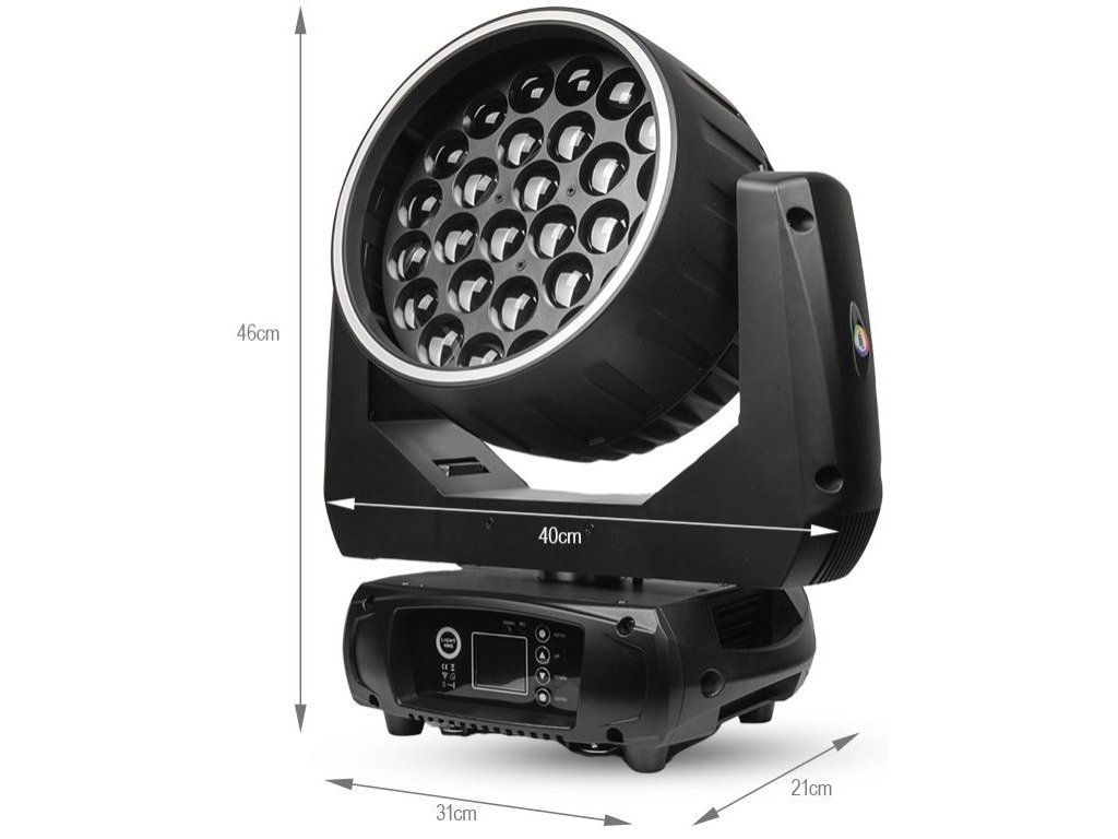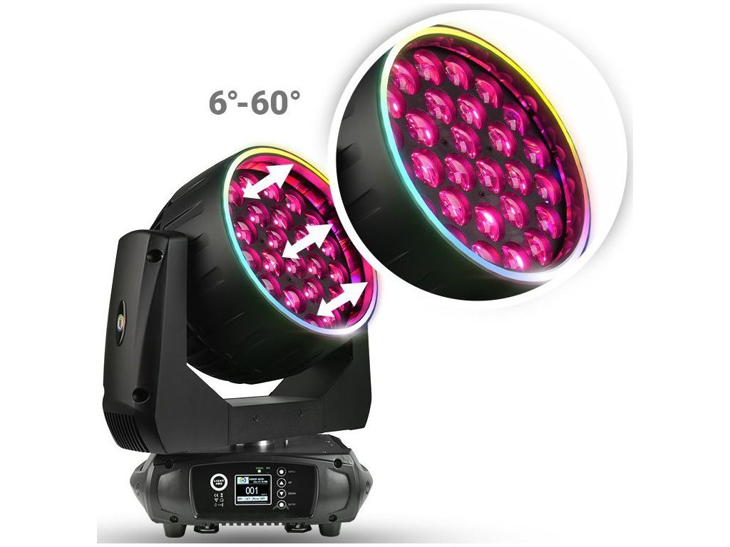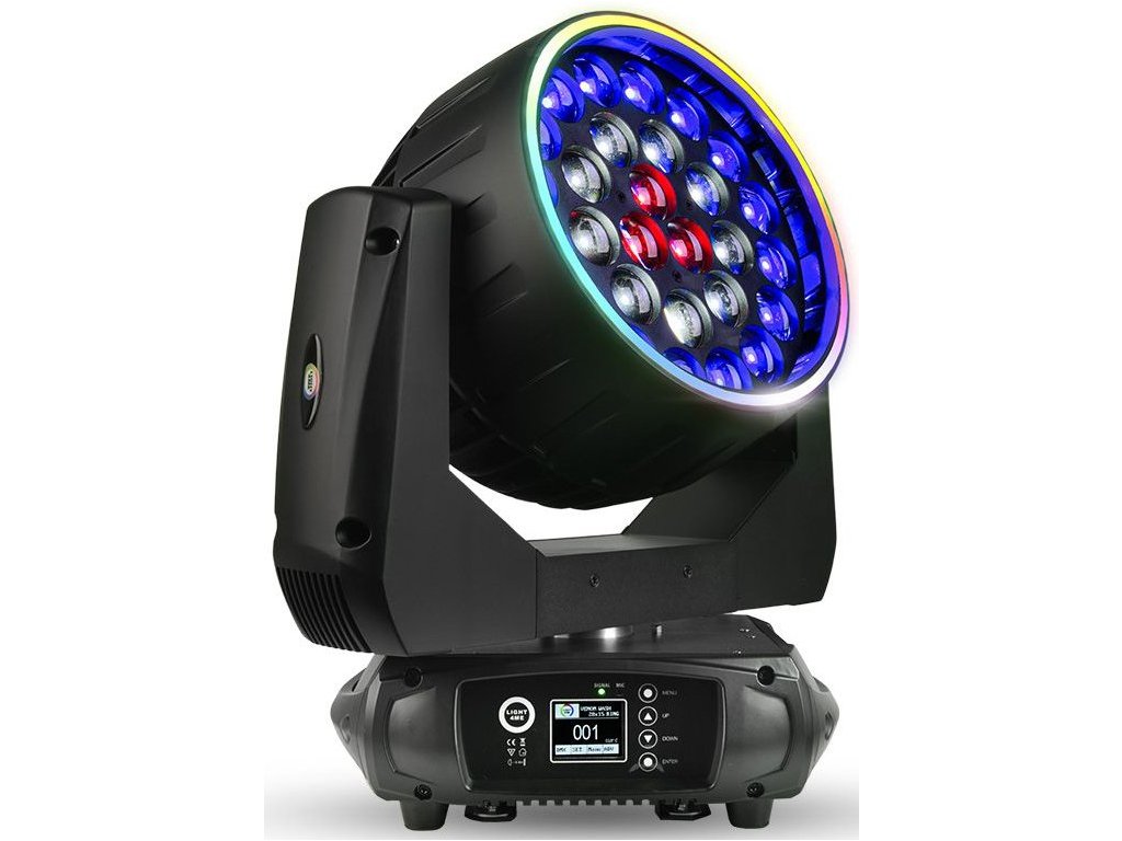 Light4Me Venom Wash 28x15 Ring to profesjonalna ruchoma głowa wyposażona w 28 wydajnych diod LED o mocy 15 W, które działają w palecie RGBW. To rozwiązanie umożliwia tworzenie szerokiej gamy temperatur barwy białej i niemal nieograniczonych kombinacji kolorów, które można wykorzystać do kolorowego oświetlenia sceny lub parkietu tanecznego. Głowica umożliwia również tworzenie efektów opartych na podziale diod LED na 3 sekcje oraz dodatkowych efektów na pierścieniu świetlnym otaczającym centralne soczewki. Dzięki elektronicznemu zoomowi głowica może świecić pod kątem rozproszenia 6° - 60°.