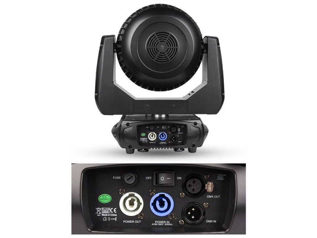 Głowica Venom Wash 28x15 Ring charakteryzuje się wysoką jakością wykonania i użytych komponentów. Głowica posiada solidną obudowę z uchwytami, które umożliwiają jej łatwe przenoszenie i instalację na konstrukcjach kratownicowych i rampach oświetleniowych. Z tyłu znajduje się wejście i wyjście zasilania PowerCon do podłączenia zasilania wielu jednostek (mniej okablowania), a także 3-pinowe wejście i wyjście XLR do sterowania głowicą za pomocą protokołu DMX. Z przodu znajduje się panel sterowania z kolorowym wyświetlaczem i 4 przyciskami. Za ich pomocą możemy poruszać się po menu, dokonywać zmian ustawień głowicy lub wybrać jeden z kilku trybów pracy: