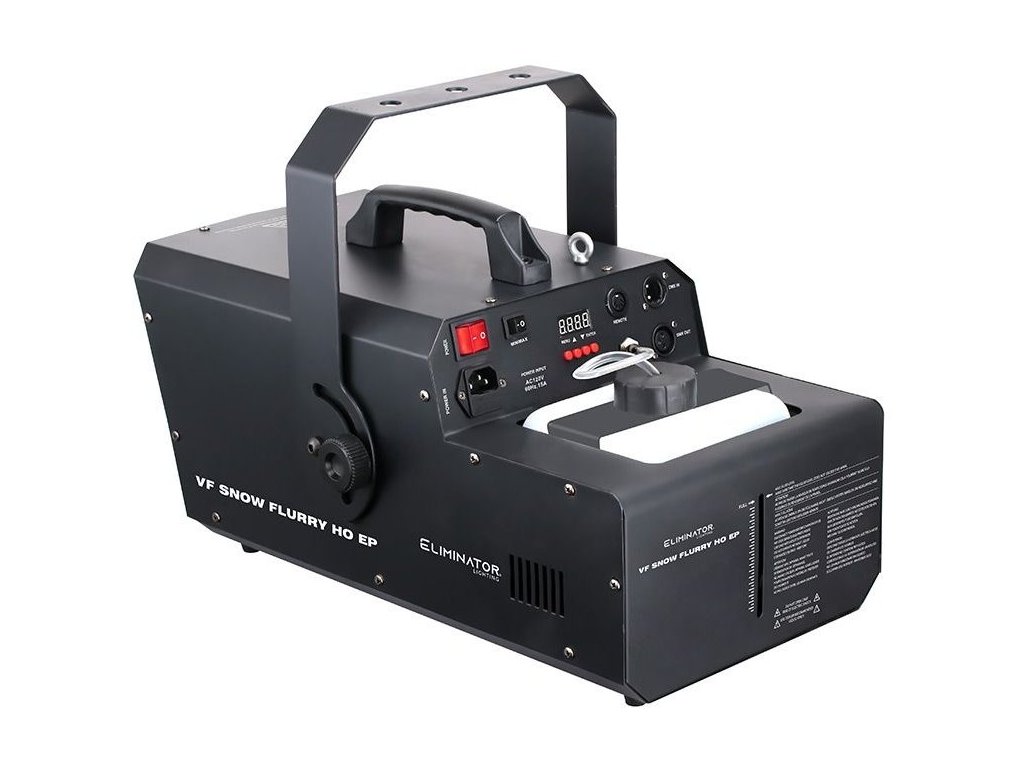 Zastępuje model ADJ VF Snow Flurry HO. Eliminator Lighting VF Snow Flurry HO EP to wysokiej klasy maszyna do śniegu, która zamieni każde wydarzenie w zimową bajkę. Dzięki mocy silnika 1250 W potrafi wytworzyć śnieg na odległość do pięciu metrów. Posiada przełącznik do ustawiania niskiej/wysokiej objętości śniegu oraz wskaźnik płynu, który ułatwia kontrolę nad ilością używanego płynu. Dzięki automatycznemu wyłączaniu przy niskim poziomie płynu pompa jest chroniona przed uszkodzeniem i zapewniona jest długotrwała wydajność. Dołączony przewodowy pilot zdalnego sterowania umożliwia precyzyjne ustawienie mocy i timingu. Kompaktowa konstrukcja ułatwia instalację i obsługę, co czyni to urządzenie idealnym partnerem do stworzenia ośnieżonej atmosfery.