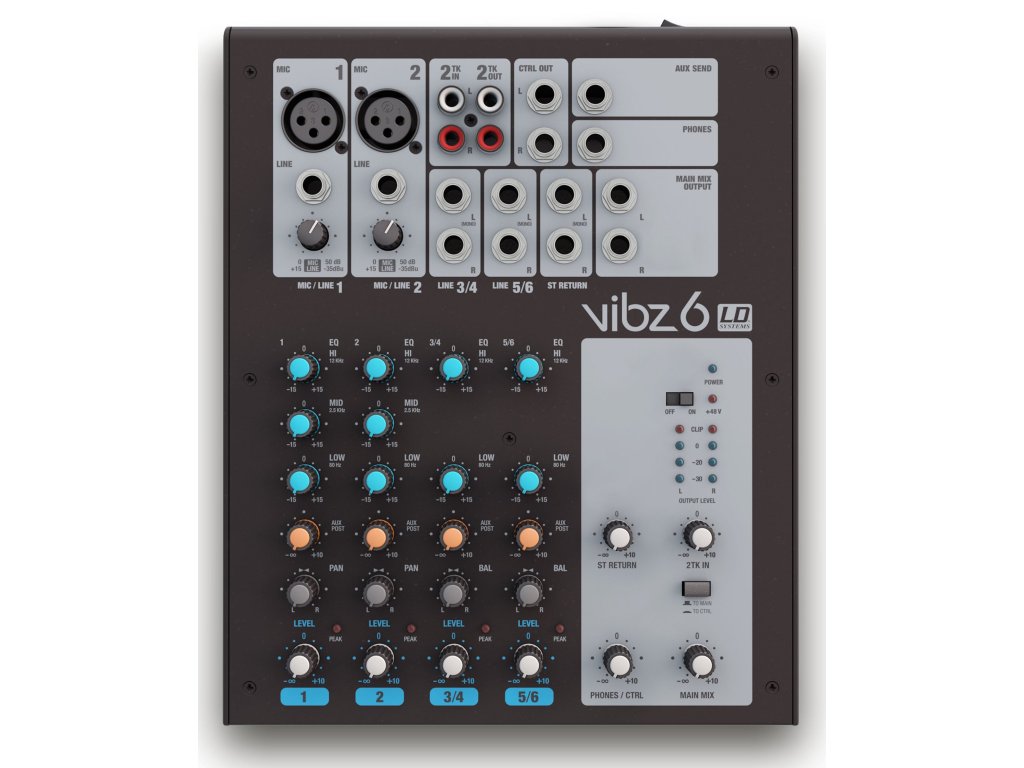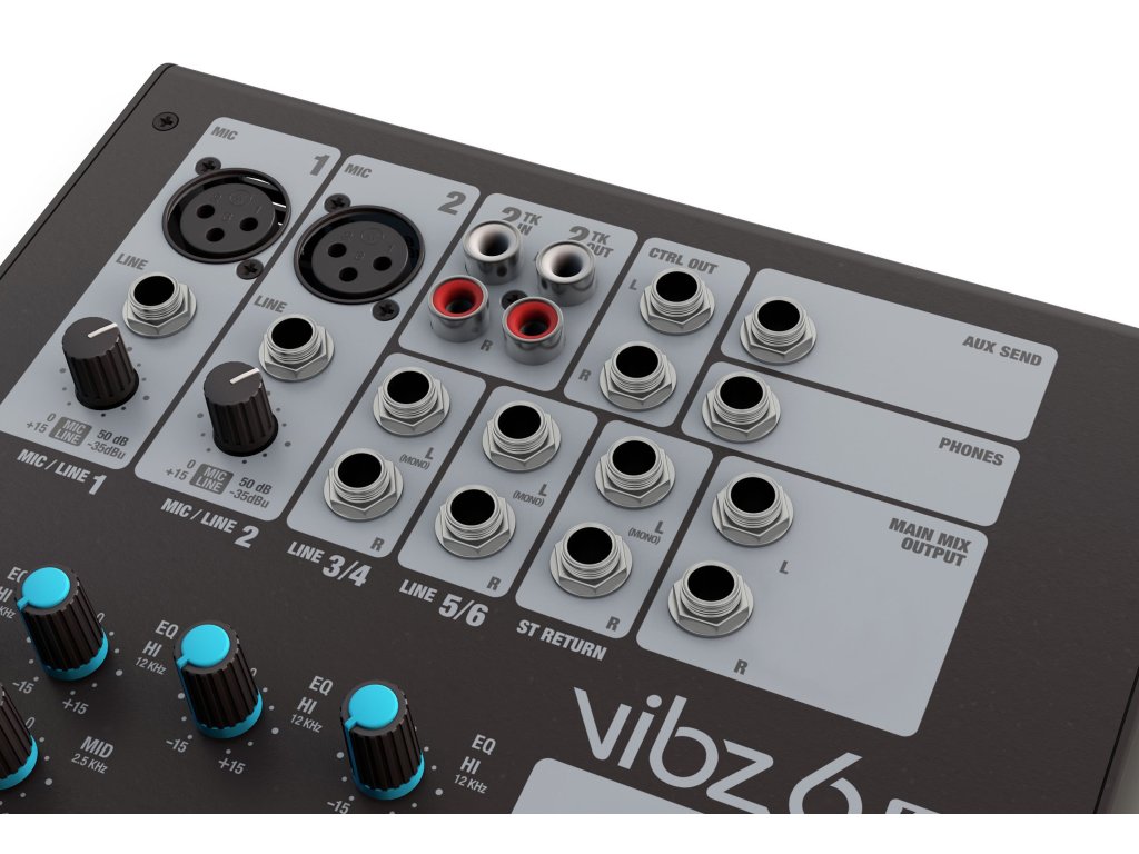 VIBZ 6 ze swoimi sześcioma kanałami i łatwą obsługą doskonale nadaje się dla mniejszych zespołów muzycznych lub do nagłośnienia małych wydarzeń. Dwa kanały posiadają wejścia mikrofonowe z wysokiej jakości przedwzmacniaczami i trzypasmową korekcją, kanał ? oraz 5/6 działają jako stereofoniczne/monofoniczne wejścia liniowe, a ich dźwięk można pokolorować za pomocą dwupasmowej korekcji.