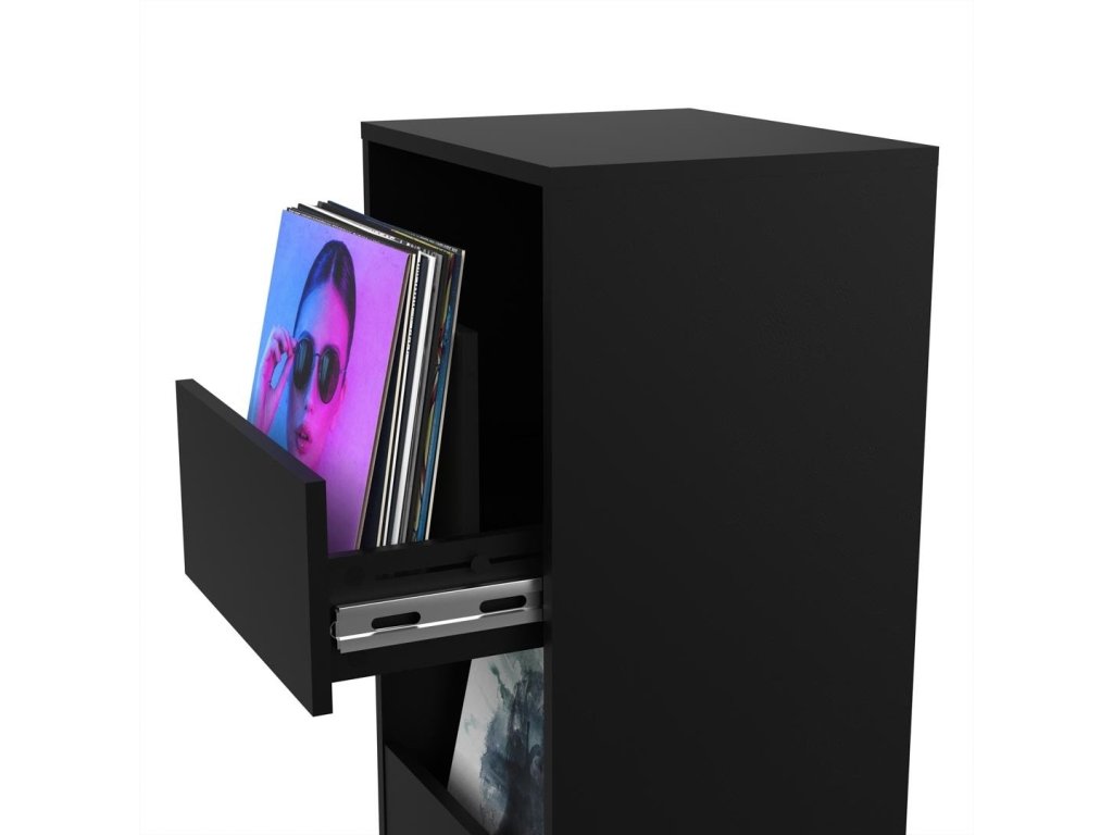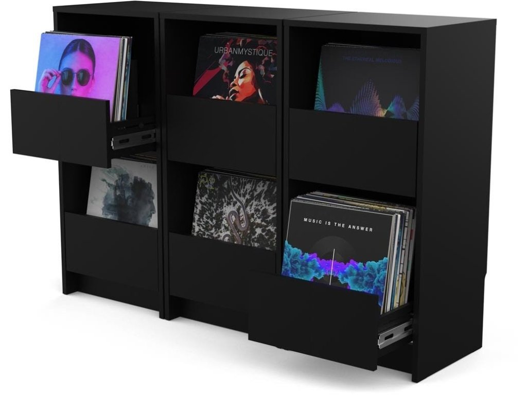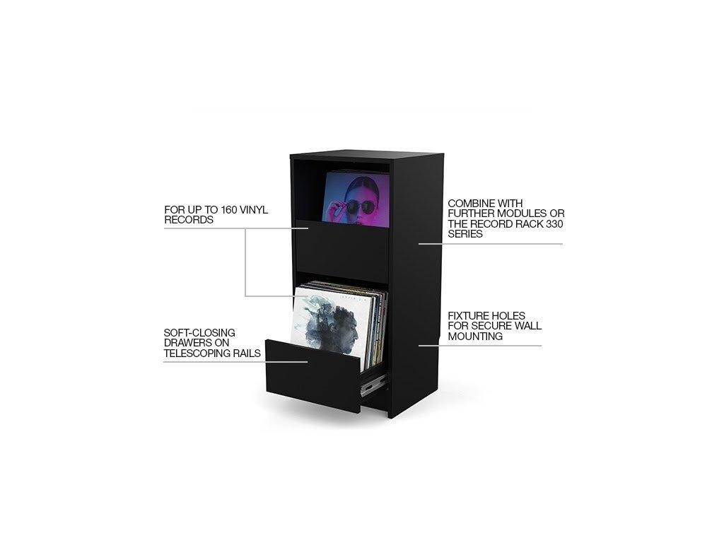 Glorious Vinyl Vault to piękna, stylowa szafka na Twoje płyty winylowe. Glorious Vinyl Vault to idealne rozwiązanie do ochrony i eksponowania Twojej kolekcji winyli. Dzięki praktycznym szufladom umożliwia łatwe przeglądanie kolekcji i jej efektywną organizację. Design i funkcjonalność Obie wysuwane szuflady są wyposażone w system cichego domykania, a każda z nich pomieści do 80 sztuk płyt 12". Dzięki teleskopowym szynom wysuwnym płyty są łatwo dostępne również w przypadku przechowywania w tylnej części szuflady. System modułowy dla rozrastających się kolekcji O pojemności do 160 LP ten system modułowy jest idealny dla kolekcjonerów z rozszerzającą się kolekcją. Ponadto można go łatwo łączyć z innymi modułami Vinyl Vault lub z serią Glorious Record Rack 330. Bezpieczne i stylowe mocowanie Nawiercone otwory gwarantują bezpieczny montaż na ścianie. System przechowywania jest dostarczany w stanie rozmontowanym wraz z materiałami montażowymi, dostępny w standardowych kolorach czarnym i białym.