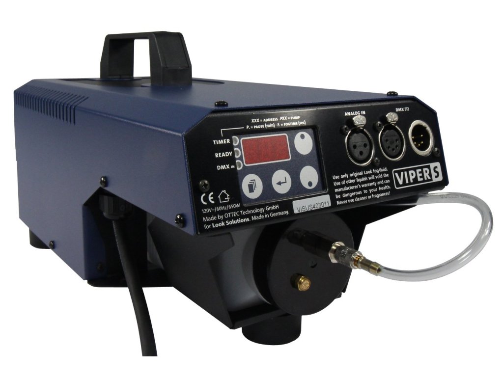 Ten generator mgły o mocy 650 W i wydajności ok. 8 metrów doskonale uzupełnia serię Viper. Viper S jest przeznaczony do mniejszych eventów i klubów. Dzięki kompaktowej konstrukcji i niskiej wadze urządzenie może być również wykorzystywane do zastosowań mobilnych. Viper S charakteryzuje się niskim zużyciem energii i płynu, ale jednocześnie wysoką wydajnością. Koszty eksploatacji są zatem niskie i energooszczędne, bez ograniczania wydajności. Urządzenie Viper S jest wyposażone we wszystkie funkcje i zwykłą niezawodność całej serii Viper i jest bardziej ekonomiczną alternatywą dla większych maszyn.