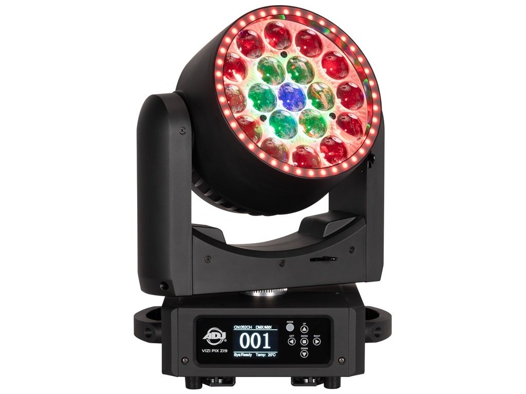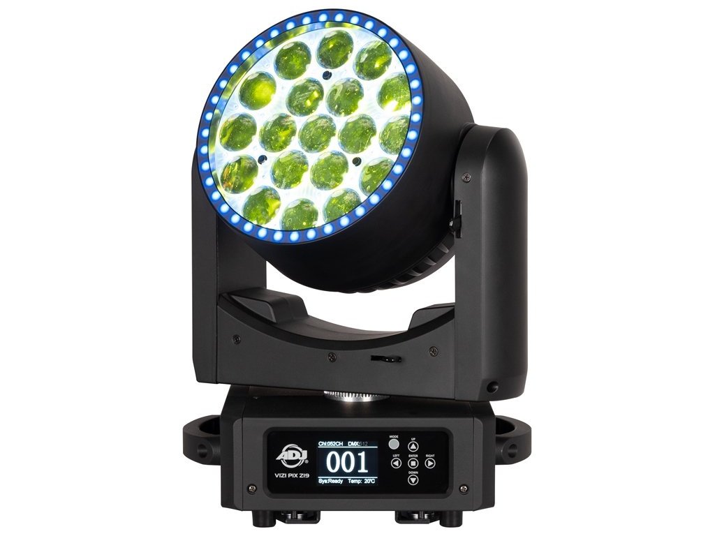 ViziPix Z19 to wysokowydajny, obrotowy reflektor typu wash, zaprojektowany do uzyskiwania żywych efektów kolorystycznych i atrakcyjnych wizualizacji na profesjonalnych scenach i podczas wydarzeń na żywo. Jest wyposażony w dziewiętnaście diod LED RGBL o mocy 30 W, które oferują zaawansowane wirtualne mieszanie kolorów CMY, szeroki zmotoryzowany zoom i płynny elektroniczny ściemniacz. Jego dynamiczny wygląd wzbogacają 30 diod RGB LED i 40 diod LED tworzących pierścień RGB, które są w pełni sterowalne. Wbudowane programy efektów pikselowych i makra kolorów rozszerzają jego możliwości twórcze.