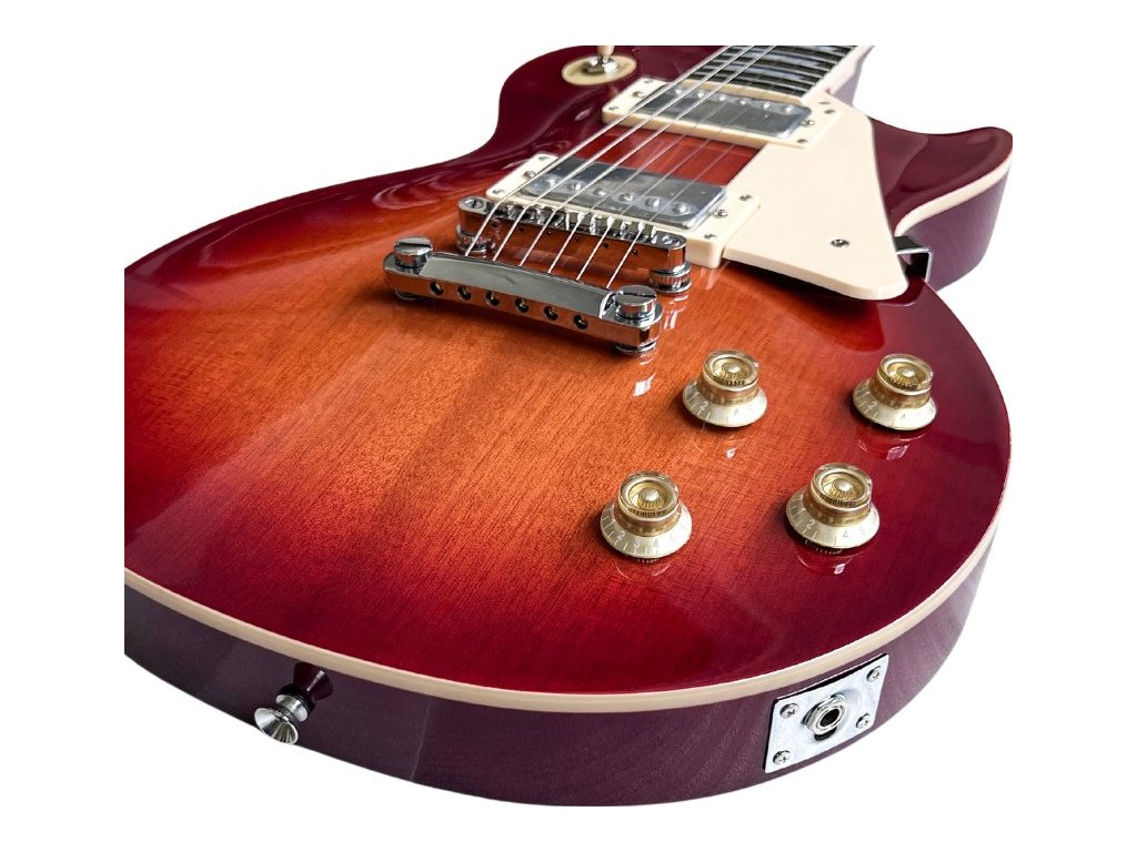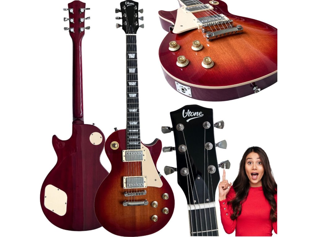 V-TONE VLP1 BS to gitara elektryczna, która spełni oczekiwania zarówno początkujących, jak i doświadczonych muzyków. Dzięki klasycznej konstrukcji typu Les Paul i rozmiarowi 4/4 oferuje wyjątkowy komfort gry i doskonałą jakość dźwięku. Korpus z drewna okoume z błyszczącym wykończeniem w kolorach Honey-Wine (przód) i Red-Wine (boki/tył), mahoniowy gryf, pickguard z tworzywa ABS w kolorze kości słoniowej, wycięcie (cutaway) oraz podstrunnica z czarnego HPL zapewniają nie tylko estetyczny wygląd, ale także trwałość instrumentu.