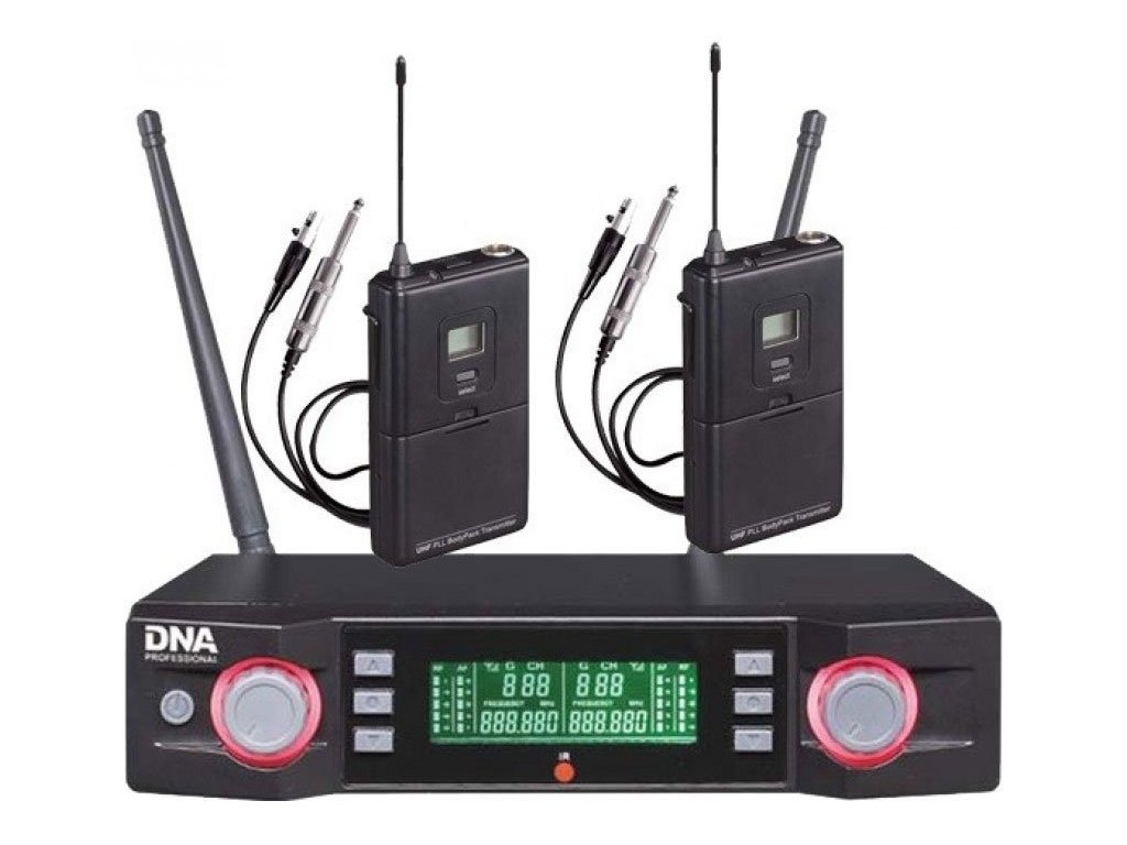 DNA VM - DUAL INSTRUMENTAL SET to wysokiej jakości bezprzewodowy system mikrofonowy oparty na technologii cyfrowej. Zestaw składa się z odbiornika (UHF), dwóch nadajników (tzw. "Bodypack") oraz przewodów, które można podłączyć bezpośrednio do urządzeń wyposażonych w złącze 6,3 mm (np. Gitara elektryczna, gitara basowa). Zestaw idealnie nadaje się na małe koncerty i występy na żywo, gdzie trzeba zrezygnować z kabli ograniczających ruch artystów na scenie.
