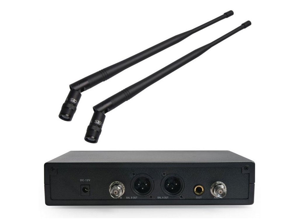 Drugą częścią systemu jest odbiornik o zakresie częstotliwości od 518 do 542 MHz. Z tyłu obudowy znajdują się wyjścia XLR dla kanałów A i B, gniazdo jack (1/4 "), gniazdo zasilacza oraz dwa złącza antenowe BNC. Z przodu znajduje się wyłącznik, dwa potencjometry, odbiornik podczerwieni oraz podwójny panel sterowania z wyświetlaczem LCD. Wyświetla aktualne parametry systemu, takie jak poziom sygnału RF / AF, ustawienie częstotliwości odbiornika, wybrany kanał roboczy oraz informację, czy mikrofony są aktualnie włączone, czy wyłączone. Za pomocą przycisków Góra, Dół i Ustaw możemy ręcznie wybrać częstotliwość lub przeprowadzić automatyczne sprawdzenie, podczas którego do urządzeń systemowych zostanie przypisana nieprzerwana częstotliwość.