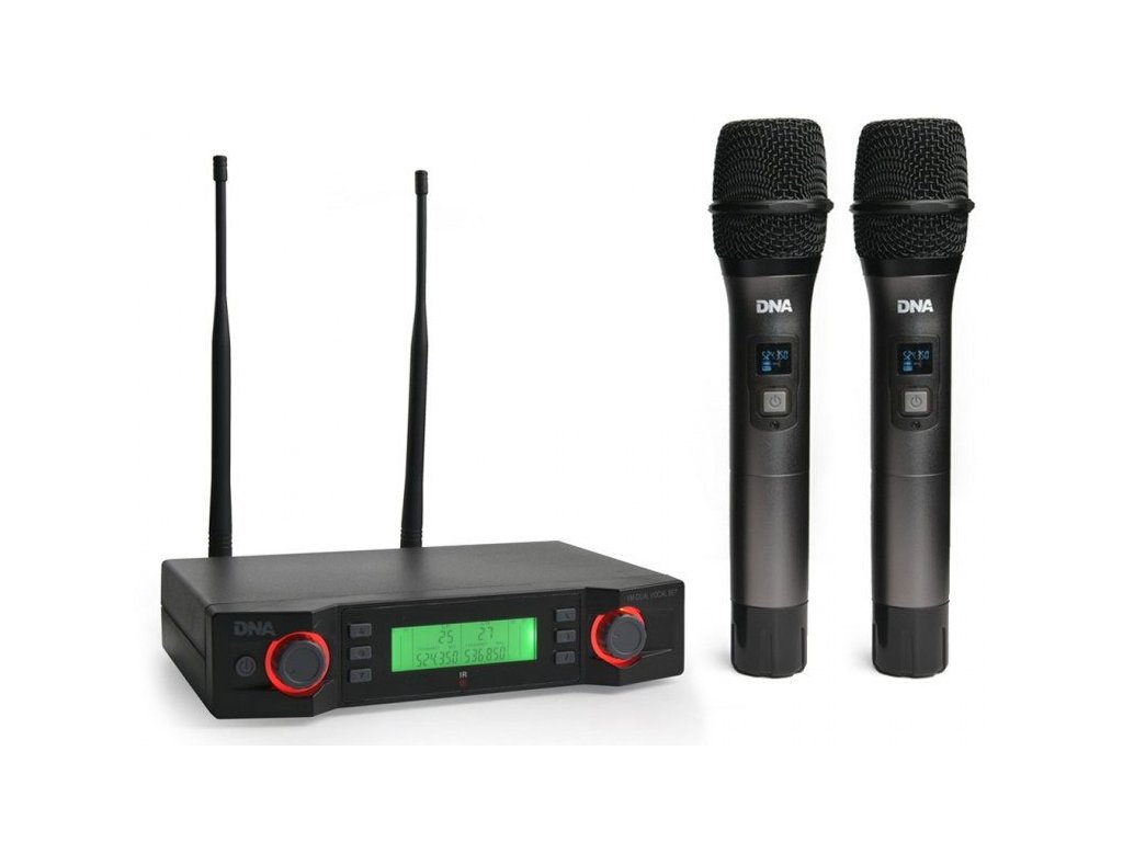 DNA VM - DUAL VOCAL SET to wysokiej jakości bezprzewodowy system mikrofonowy oparty na technologii cyfrowej. Zestaw składa się z odbiornika (UHF) i dwóch mikrofonów ręcznych. Idealnie nadaje się do koncertów i występów na żywo, imprez, wesel, klubów karaoke, a także dla mobilnych DJ-ów.