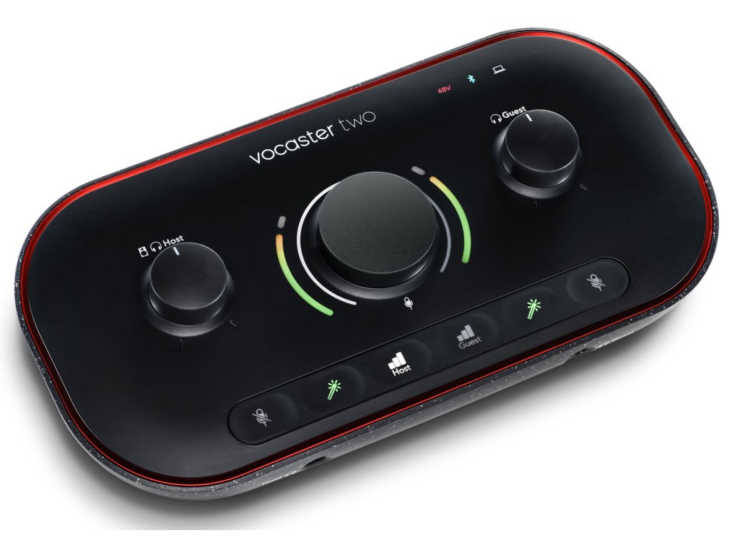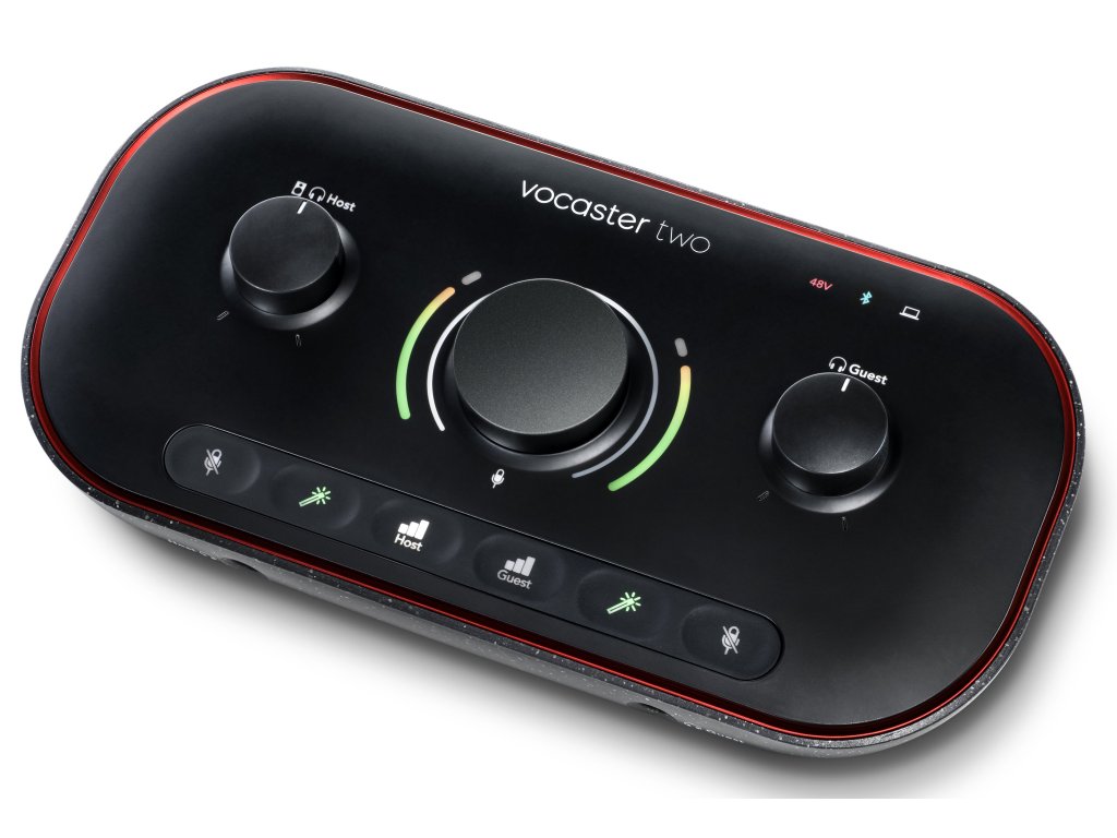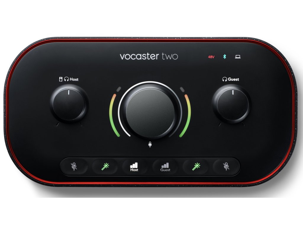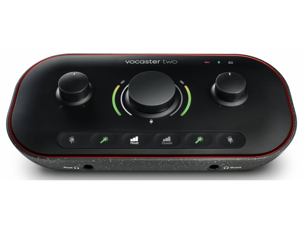 Vocaster Two zawiera trzy solidne pokrętła do regulacji głośności wejść mikrofonowych i wyjścia słuchawkowego lub liniowego, przycisk Mute, trzy presety, technologię bezprzewodową Bluetooth, wyjście dla aparatu DSLR, złącze dla urządzeń mobilnych, port USB do podłączenia do PC i oczywiście dwa wejścia mikrofonowe z zasilaniem phantom. W zestawie znajduje się kabel USB i półroczna licencja na oprogramowanie Hindenburg LITE, aCast, SquadCast lub Ampify Studio.