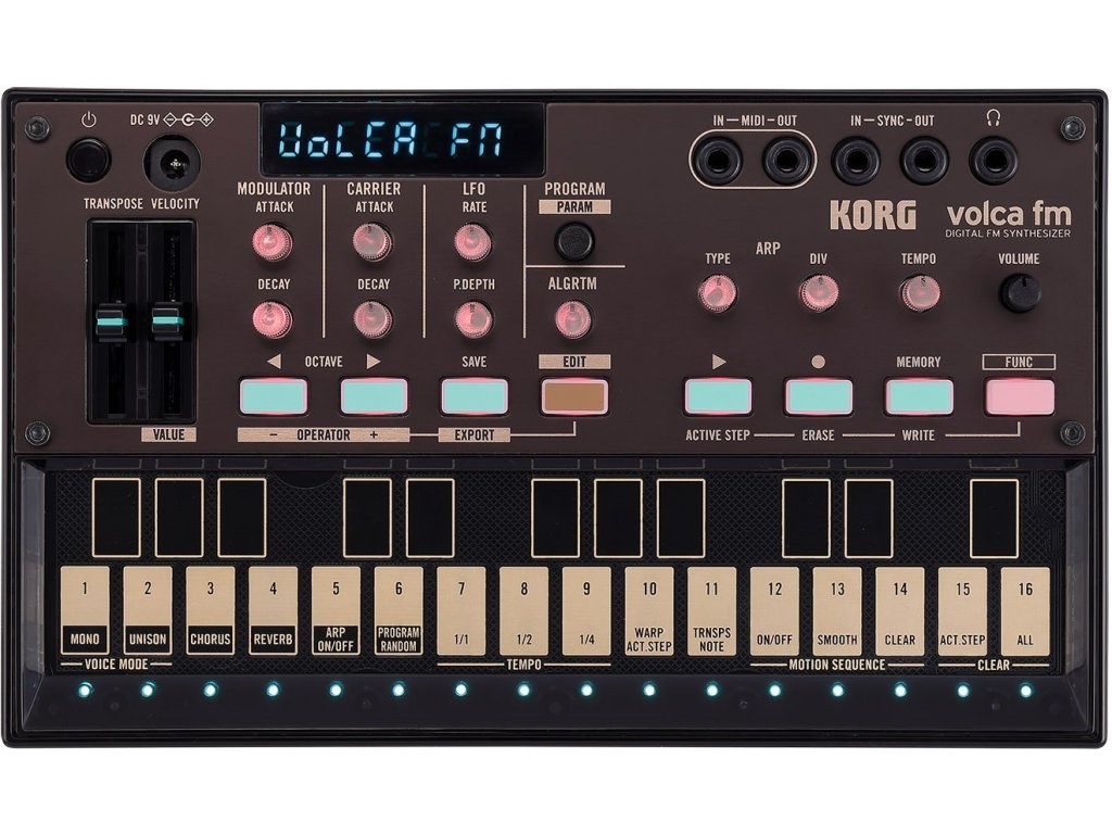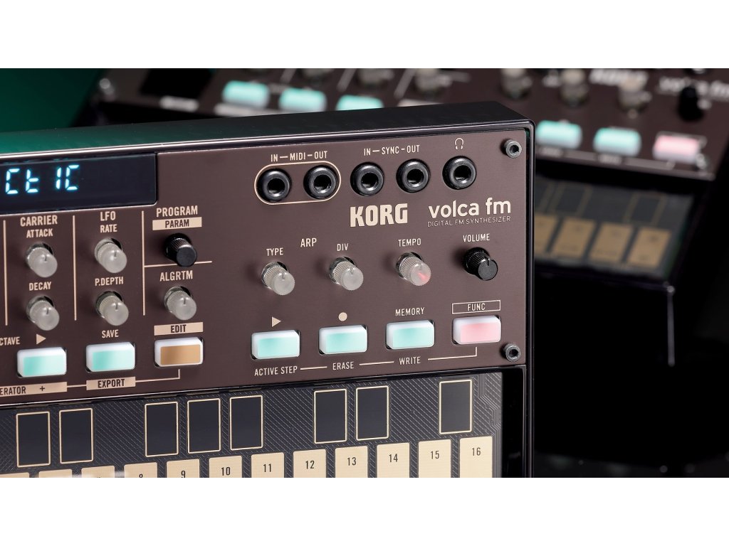 Volca fm nowej generacji to potężny 6-głosowy, 6-operatorowy syntezator FM ze wszystkimi 32 klasycznymi algorytmami, 16-krokowym sekwencerem pętli, efektami i potężnym arpeggiatorem, który doskonale odwzorowuje brzmienie klasycznej Yamahy DX7 i jest w pełni kompatybilny z programami SYS-EX dla DX7.