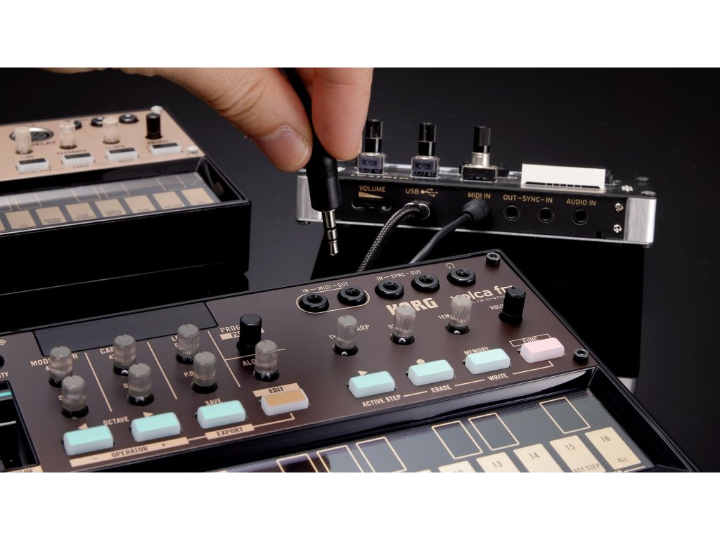 Oprócz MIDI IN, nowa volca fm zawiera również MIDI OUT (IN/OUT 3,5mm TRS), dzięki czemu można używać intuicyjnego wewnętrznego sekwencera volca do sterowania innymi urządzeniami za pośrednictwem MIDI, co czyni go doskonałym uzupełnieniem Twojego samodzielnego zestawu. Oczywiście dobrze współpracuje również z wybranym DAW dzięki wysyłaniu nut, ustawień i synchronizacji przez MIDI IN.