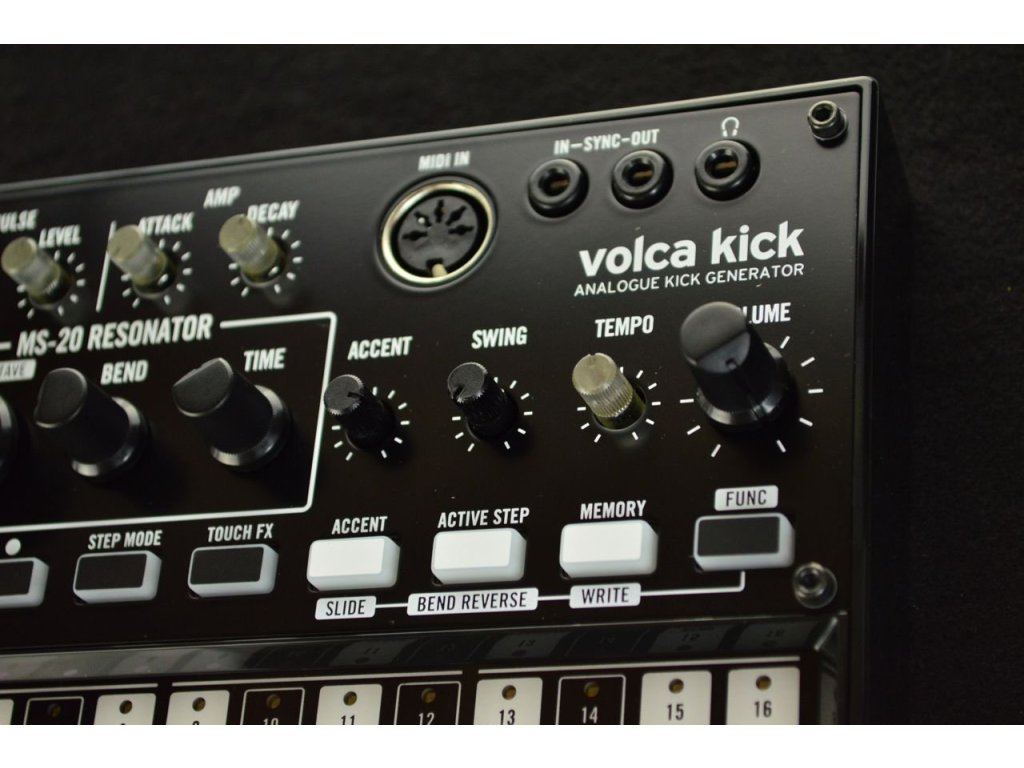 Volca kick generuje dźwięki kopniaka za pomocą w pełni analogowego obwodu. Do budowy dźwięku nie wykorzystuje klasycznej sinusoidalnej fali dźwiękowej, ale dźwięk oscylacji filtra MS-20. Potężny filtr Rev.1 w MS-20 przy określonym poziomie rezonansu zaczyna sam oscylować, osiągając w ten sposób niepowtarzalne dźwięki o złożonym zakresie tonalnym.