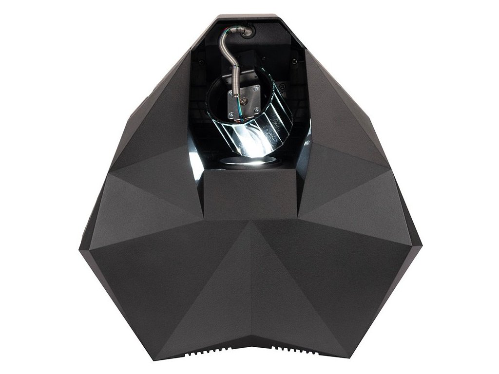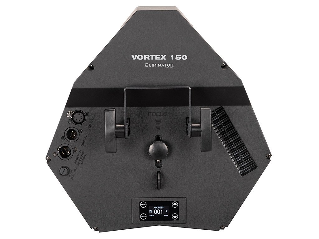 Urządzenie jest wyposażone w 5-pinowe wejścia/wyjścia DMX, zamykane wejście zasilania IP65 i oczko zabezpieczające do bezpiecznego mocowania. Kompaktowy i lekki, Vortex 150 jest idealny do wąskich przestrzeni, niskich sufitów i energicznych miejsc, takich jak bary, kluby i centra rozrywki.