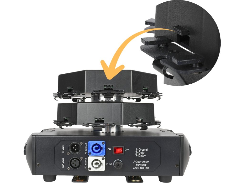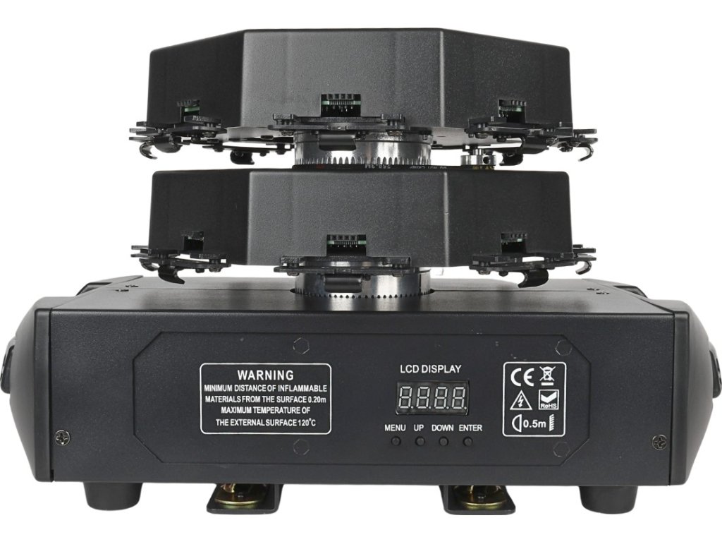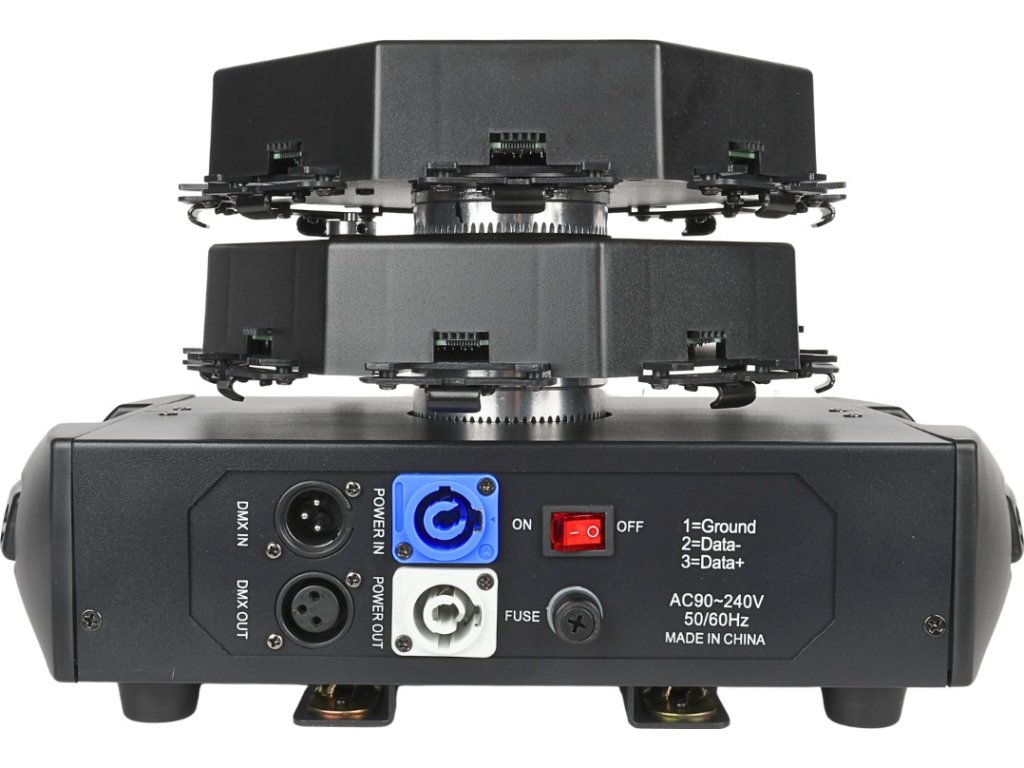 - Typ urządzenia: ruchomy efekt świetlny LED DMX z efektem tła i uchwytami montażowymi typu omega- Źródło światła: 576x0,3W RGB SMD 5050 LED 3w1
