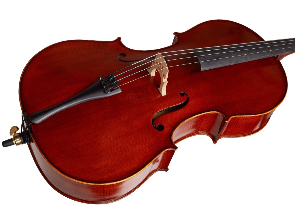 Seria Virtuoso Pro SV to gama półprofesjonalnych instrumentów smyczkowych wyższej jakości w bardzo przystępnej cenie. Całkowicie masywne wiolonczela jest zatem idealnym wyborem dla młodych koncertujących muzyków. Płyta wierzchnia wykonana jest z litego świerku klasy AA, boki i płyta spodnia z pięknego, płomienistego klonu, całość wykończona ręcznie nakładanym lakierem spirytusowym. Podstawek jest klasycznie klonowy, podstrunnica i kołki stroikowe wykonane są z hebanu. W zestawie znajduje się również smyczek oraz wyściełany futerał z nylonu.