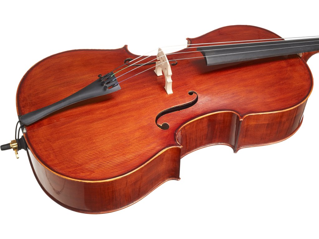 Seria Virtuoso Pro SV to gama półprofesjonalnych instrumentów smyczkowych wyższej jakości w bardzo przystępnej cenie. Całkowicie masywne wiolonczela jest zatem idealnym wyborem dla młodych koncertujących muzyków. Płyta wierzchnia wykonana jest z litego świerku klasy AA, boki i płyta spodnia z pięknego, płomienistego klonu, całość wykończona ręcznie nakładanym lakierem spirytusowym. Podstawek jest klasycznie klonowy, podstrunnica i kołki stroikowe wykonane są z hebanu. W zestawie znajduje się również smyczek oraz wyściełany futerał z nylonu.