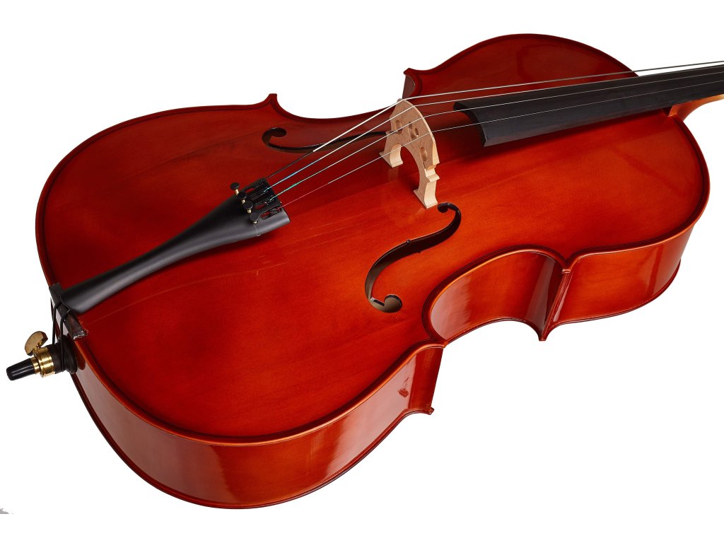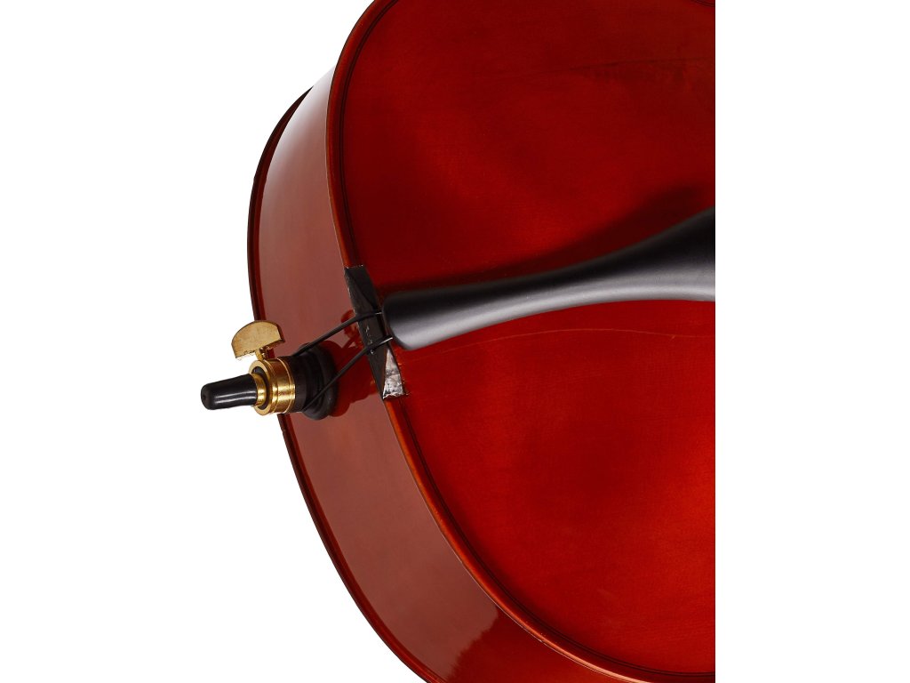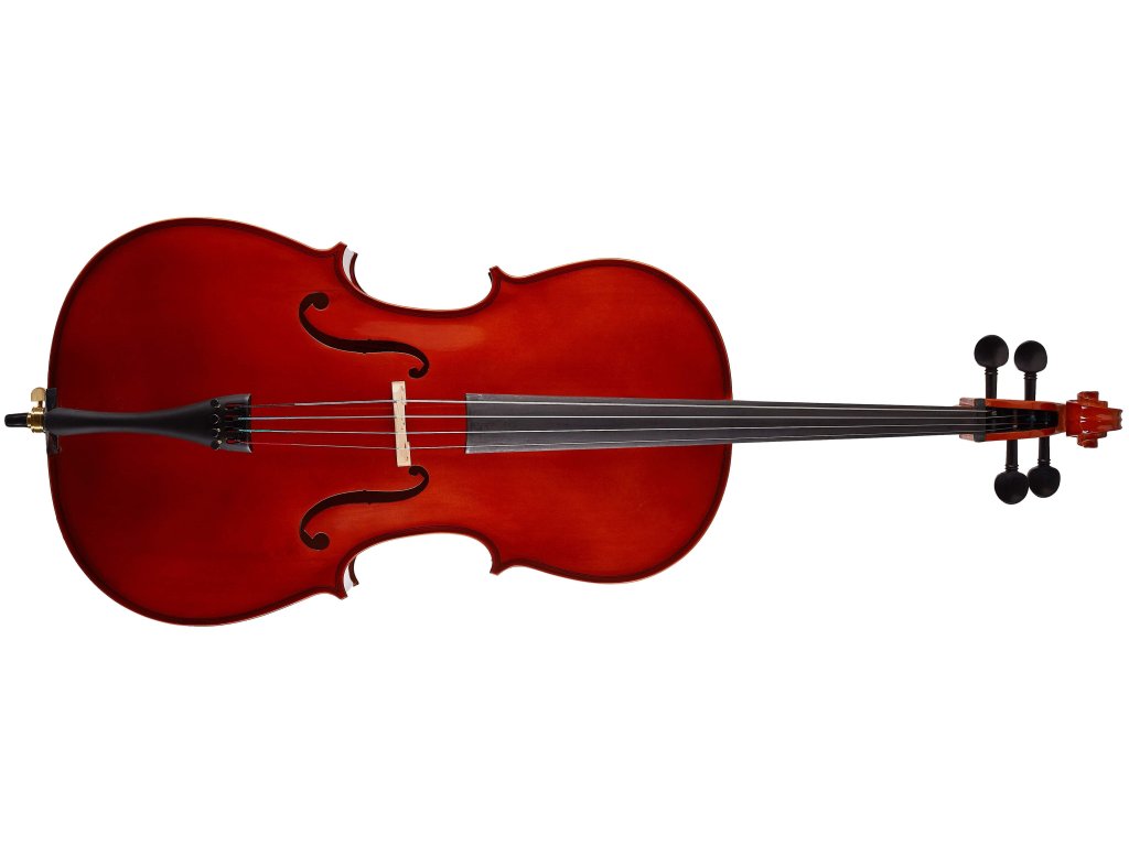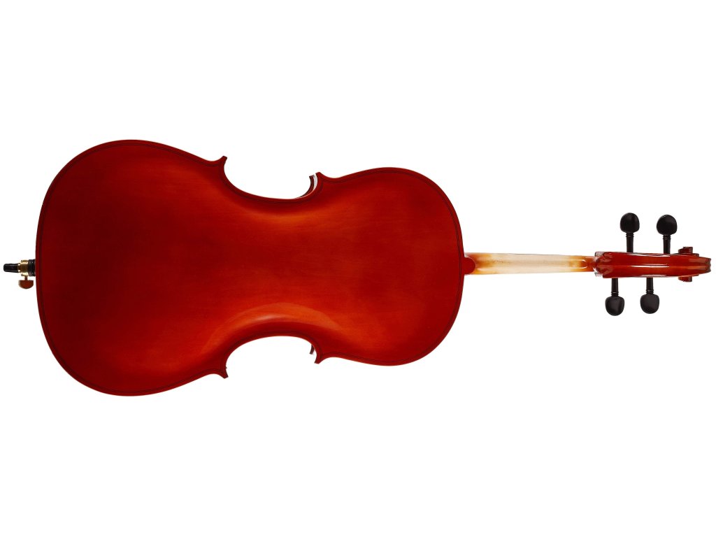 Wiolonczela dostarczana jest w zestawie z wyściełanym pokrowcem i smyczkiem z ośmiokątnym przekrojem pręta i naturalnym włosiem.