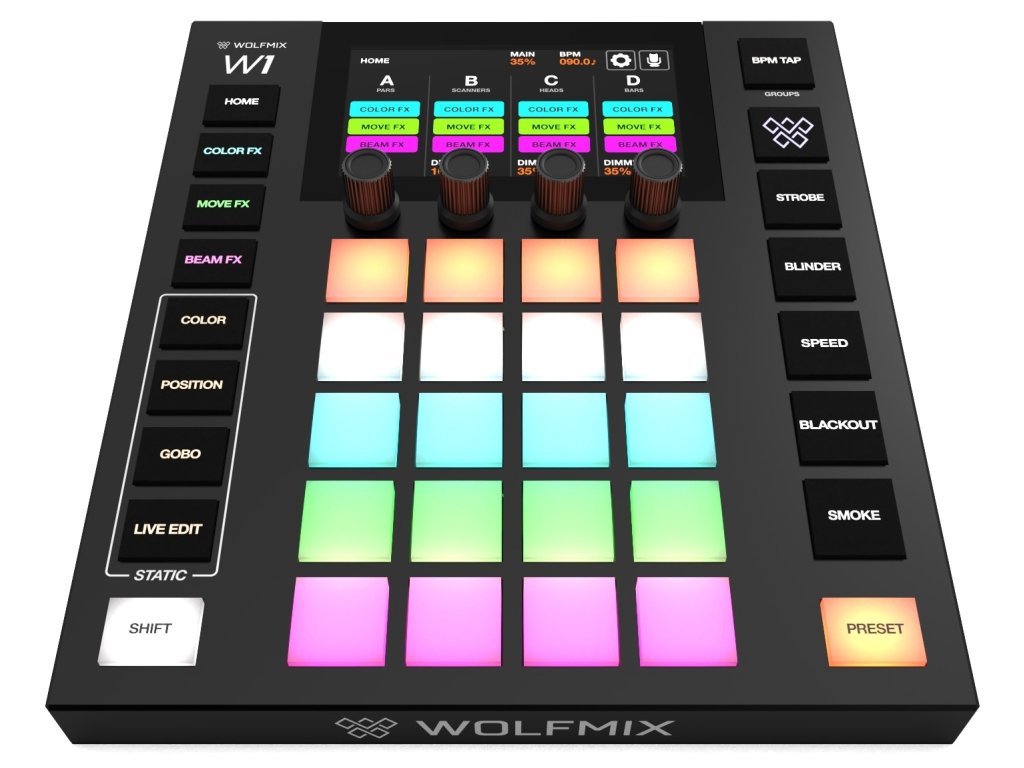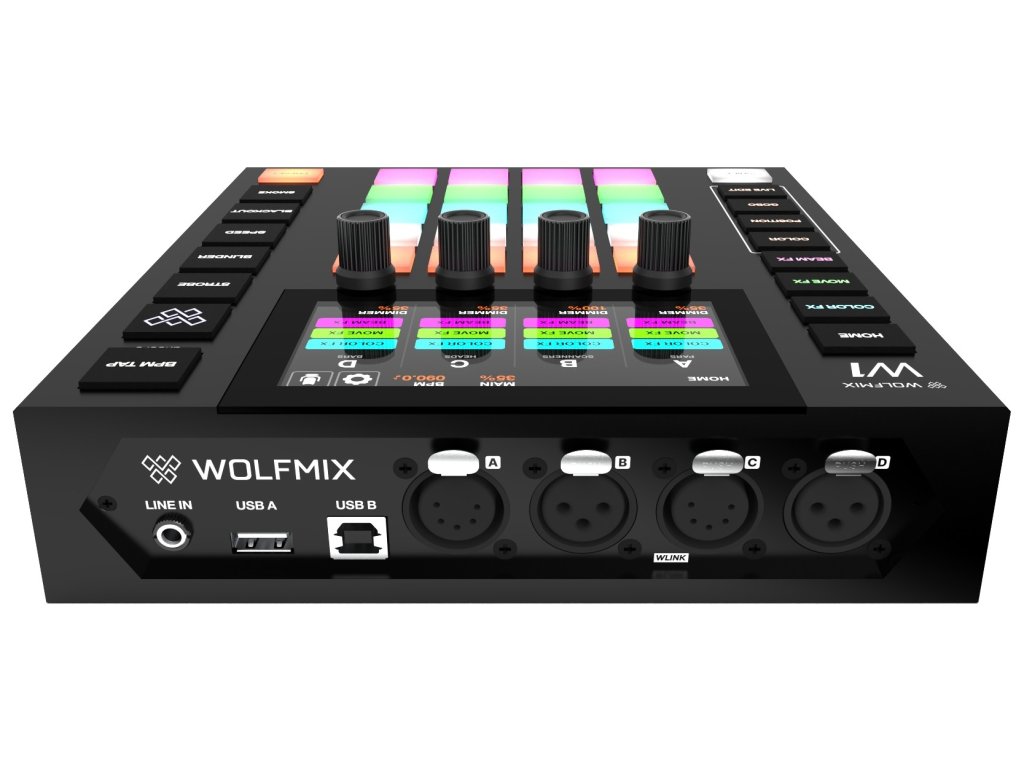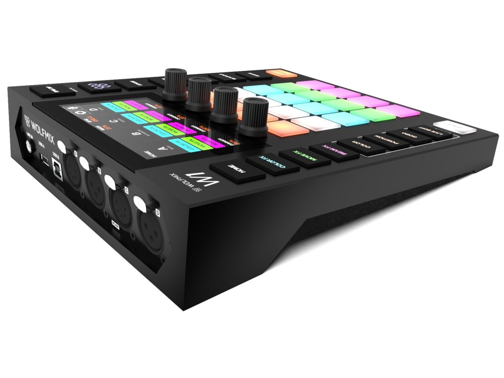 Kontroler Wolfmix W1 może się również pochwalić wysokiej jakości komponentami, takimi jak stopowe nakładki enkoderów, silikonowe przyciski z matowym wykończeniem olejowym i kolorowe podświetlenie LED dla łatwej widoczności w każdym środowisku. Dzięki wydajnemu procesorowi 220 MHz kontroler ten zapewnia szybką i niezawodną wydajność. Ponadto oferuje wiele opcji połączeń, w tym złącza DMX OUT XLR, złącze USB-B i złącze USB-A dla funkcji MIDI/MSD.