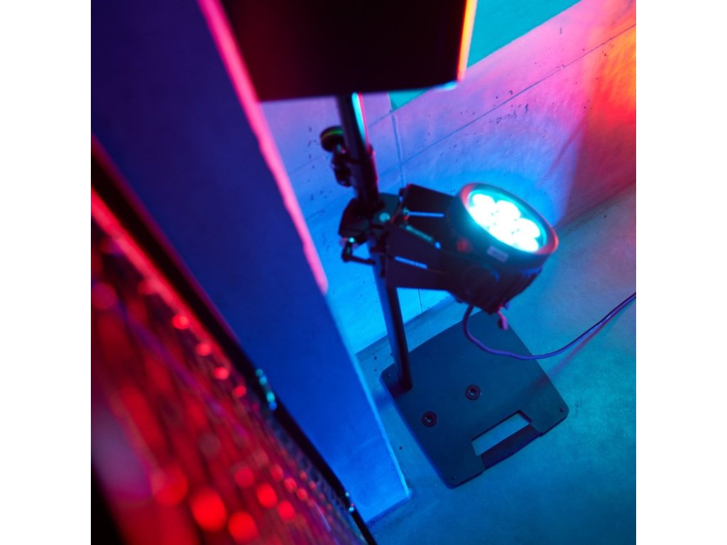 Kompaktowa, ciężka stalowa podstawa Gravity zapewnia stabilne i bezpieczne podparcie. Jest wyposażona w trzy wewnętrzne gwinty M20 do umieszczania tyczek statywowych, z których dwa są dodatkowo rozmieszczone mimośrodowo. Gumowe uchwyty umożliwiają wygodne przenoszenie, a wyściełane filcem nóżki chronią powierzchnię ustawienia przed zarysowaniami.