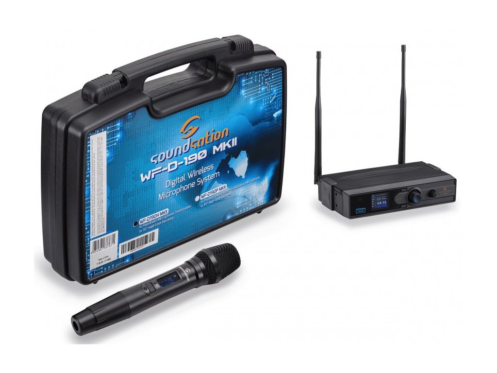 WF-D190 MKII wykorzystuje całkowicie nową technologię cyfrowej transmisji i sprzętowego szyfrowania danych dźwiękowych, co umożliwia doskonałą jakość dźwięku w porównaniu z analogowymi systemami UHF, bardzo niską latencję (lepszą niż w systemach 2,4 GHz) i maksymalne bezpieczeństwo dzięki kryptograficznemu sprzętowi. Unikalna 16-bitowa cyfrowa technologia ID pilot zapobiega zakłóceniom nawet na tej samej częstotliwości i umożliwia ciągłą wymianę danych między nadajnikiem a odbiornikiem, takich jak poziom naładowania baterii, moc nadawania, działanie squelcha itp. System jest również wyposażony w automatyczne skanowanie częstotliwości i wyświetlanie widma częstotliwości, które umożliwiają użytkownikowi wybór mniej zakłóconych częstotliwości w każdym środowisku, w którym pracuje. Jest wyposażony w 90 częstotliwości podzielonych na 15 grup, z których każda zawiera 6 kanałów. Interfejs użytkownika jest bardzo prosty i intuicyjny dzięki kolorowemu wyświetlaczowi TFT na odbiorniku i prostocie jego menu ustawień. Nadajnik ręczny jest wyposażony w wyświetlacz LCD z funkcją automatycznego wyłączania, aby oszczędzać zużycie baterii. Mikrofon ręczny jest również wyposażony w akumulator litowy, który można ładować przez port USB z tyłu odbiornika. Dostępne są dwa zestawy do montażu w 19" racku, które umożliwiają zainstalowanie 1 lub 2 odbiorników w 1 lub 2 jednostkach rackowych.
