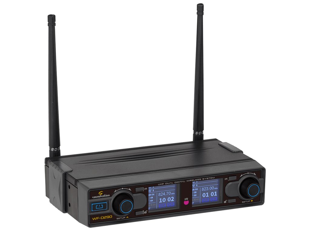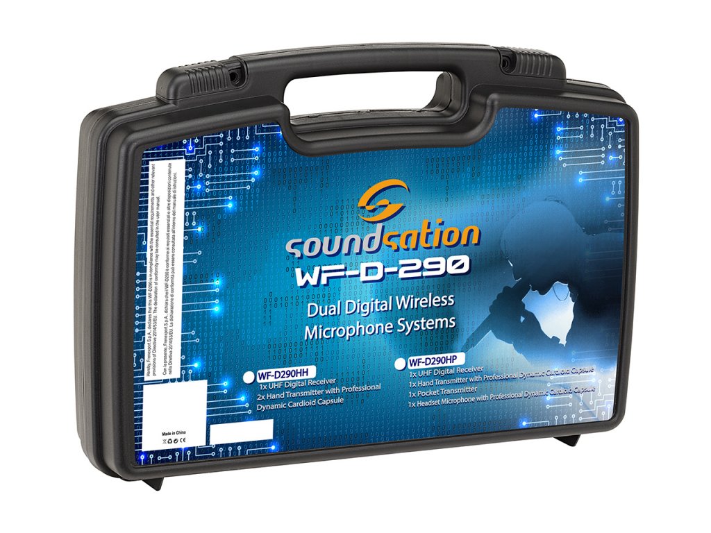 SOUNDSATION WF-D290 MKII wykorzystuje całkowicie nową cyfrową technologię transmisji i sprzętowe szyfrowanie danych audio, co pozwala na uzyskanie doskonałej jakości dźwięku (w porównaniu z analogowymi systemami UHF), bardzo niskie opóźnienia (lepsze niż w systemach 2,4 GHz) i maksymalne bezpieczeństwo dzięki kryptograficznemu sprzętowi. Unikalna 16-bitowa cyfrowa technologia ID pilot zapobiega zakłóceniom nawet na tej samej częstotliwości i umożliwia ciągłą wymianę danych między nadajnikami i odbiornikiem, takich jak poziom naładowania baterii, moc nadawania, squelch itp. System jest wyposażony w automatyczne skanowanie częstotliwości i wyświetlanie widma częstotliwości, które umożliwiają użytkownikowi wybór mniej zakłóconych częstotliwości w każdym środowisku, w którym pracuje. Wyposażony jest w 90 częstotliwości dla każdego nadajnika, podzielonych na 10 grup, z których każda zawiera 9 kanałów. Interfejs użytkownika jest bardzo prosty i intuicyjny dzięki kolorowemu wyświetlaczowi TFT na odbiorniku i prostocie menu ustawień. Nadajnik ręczny i bodypack (w przypadku modelu WF-D290HP) są jednak wyposażone w wyświetlacz LCD z funkcją automatycznego wyłączania, aby oszczędzać baterię. Mikrofon ręczny jest również wyposażony w akumulator litowy, który można ładować przez port USB z tyłu odbiornika. Dostępne są dwa opcjonalne zestawy do montażu w szafie rack 1 lub 2 odbiorników w 1 lub 2 standardowych jednostkach rack 19".