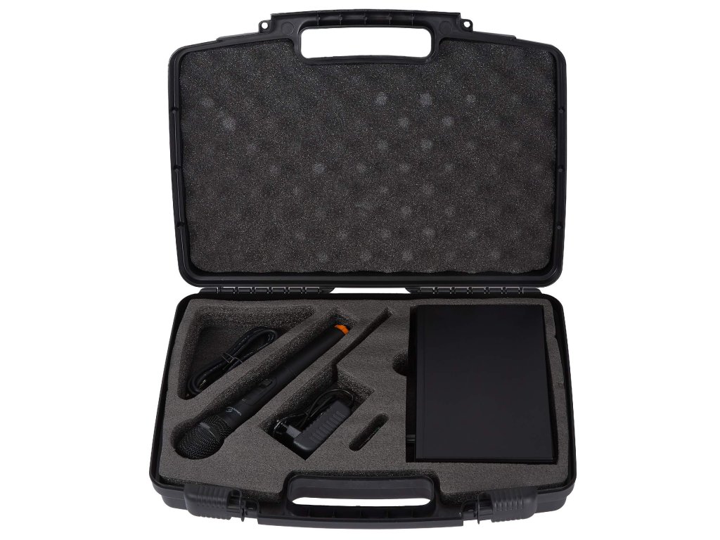 Bezprzewodowy system z mikrofonem ręcznym dla każdego, kto wymaga niezawodnego i wysokiej jakości dźwięku z przyjazną dla użytkownika obsługą Plug and Play. System ma zasięg do 30 metrów i można go używać przede wszystkim podczas prezentacji i innych niewymagających zastosowań. Mikrofon dynamiczny ma charakterystykę kardioidalną. Nadajnik wytrzymuje do 5 godzin pracy. Cały zestaw jest dostarczany w walizce transportowej.
