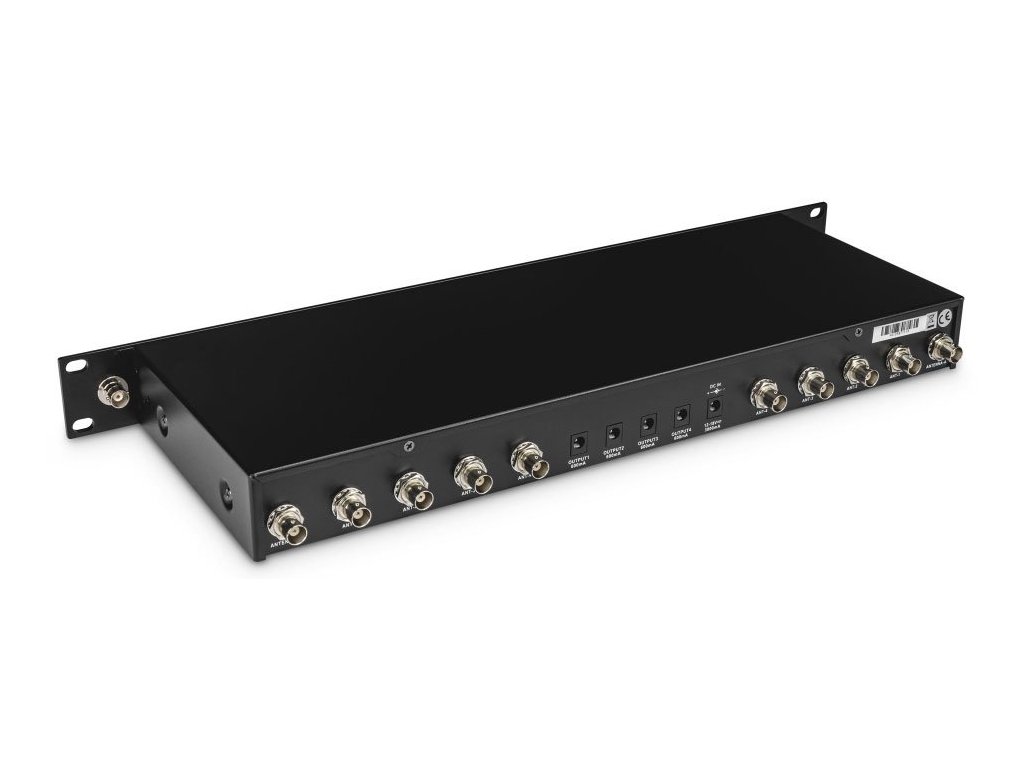 Antenna Split Box 4-pasmowy do wszystkich typów bezprzewodowych systemów mikrofonowych pracujących w zakresie od 500 do 900 MHz.