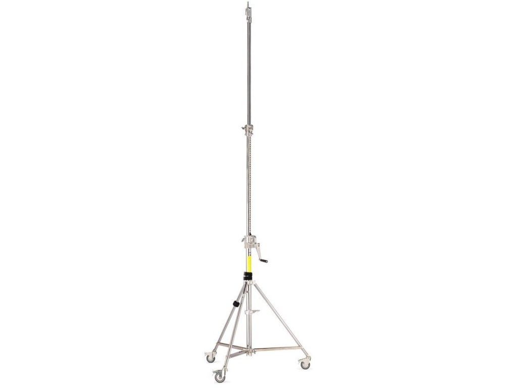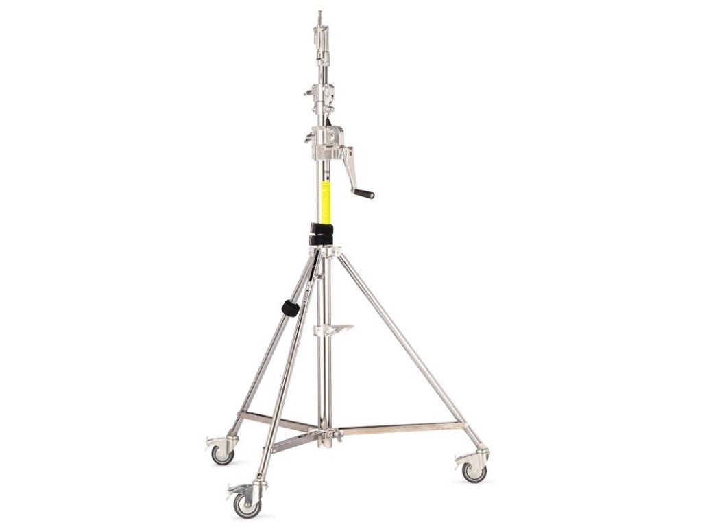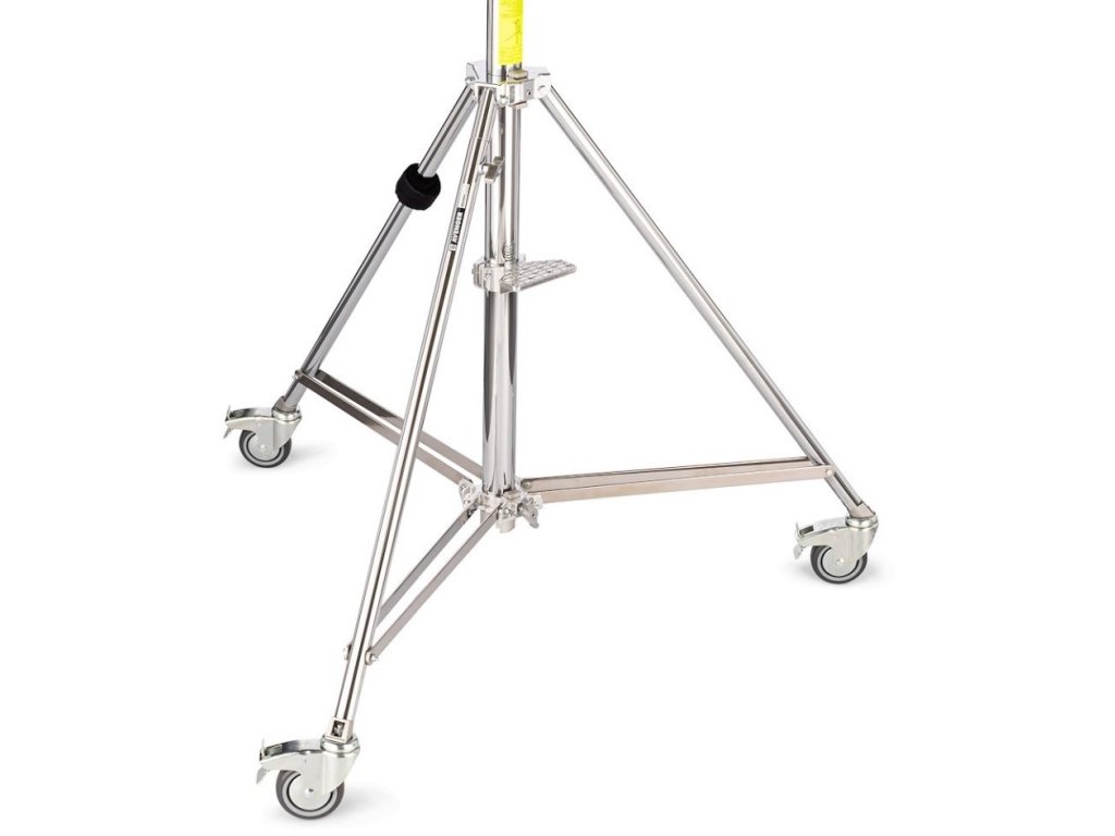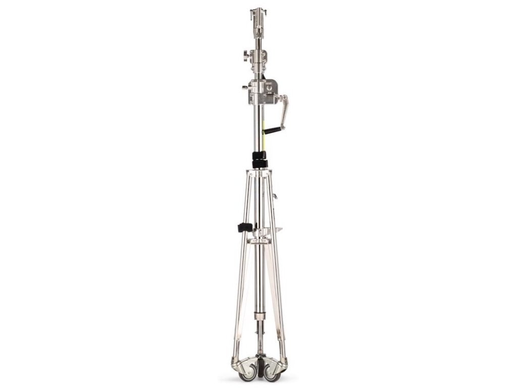Ten statyw ze stali chromowanej ma 3 sekcje. Jest wyposażony w zwijaną rączkę, 1 poziomującą stopkę i hamowane koła. Ma maksymalny udźwig 30 kg i może być również podniesiony na wysokość 2,96 m.