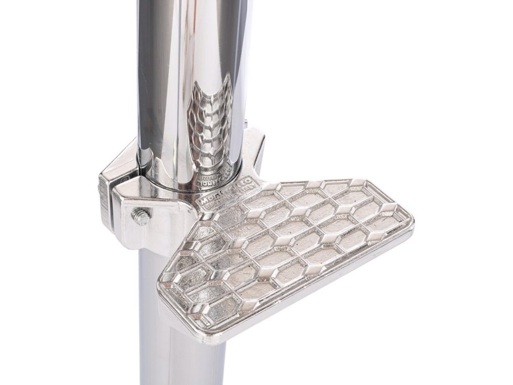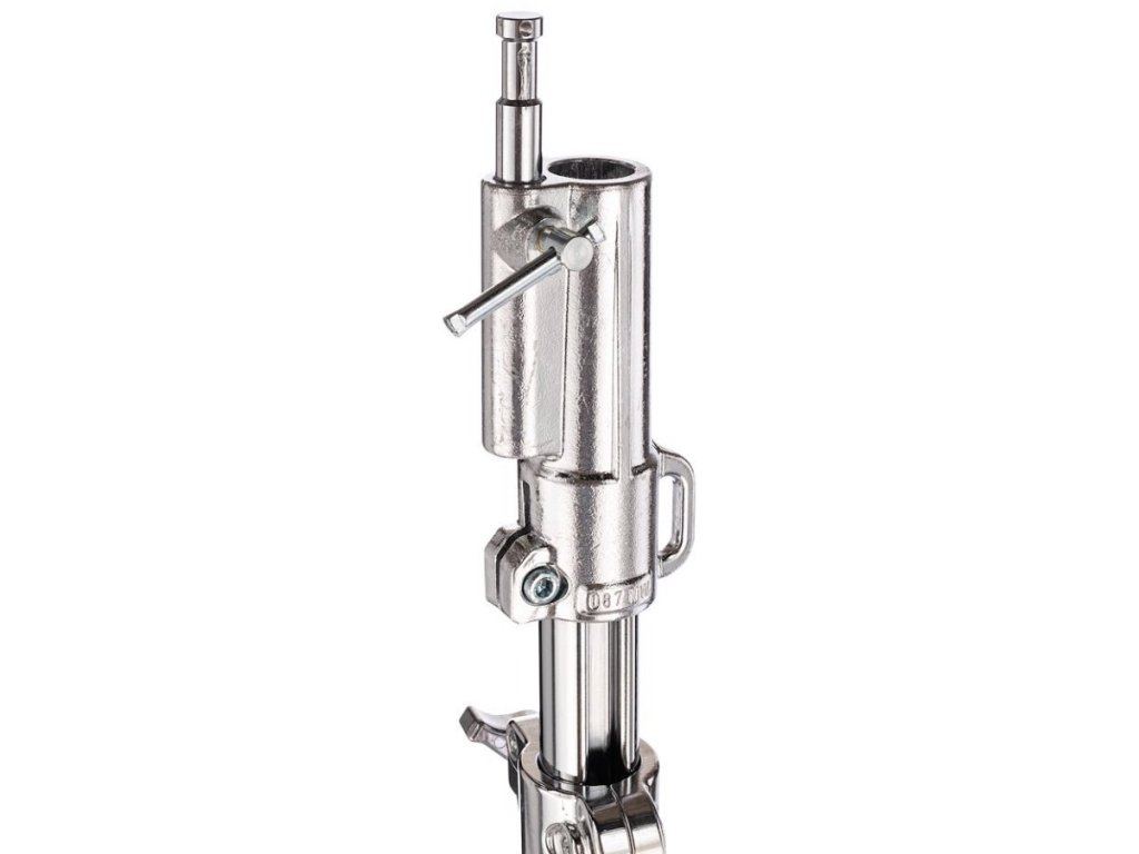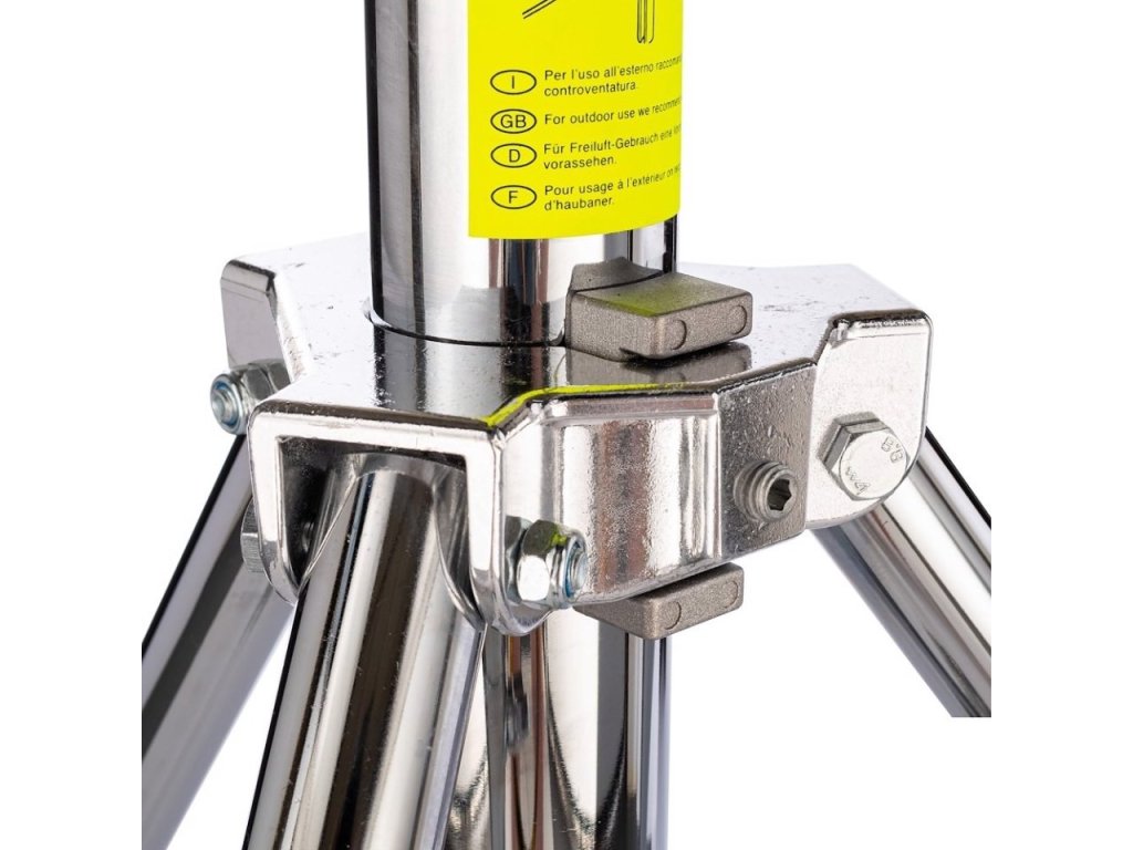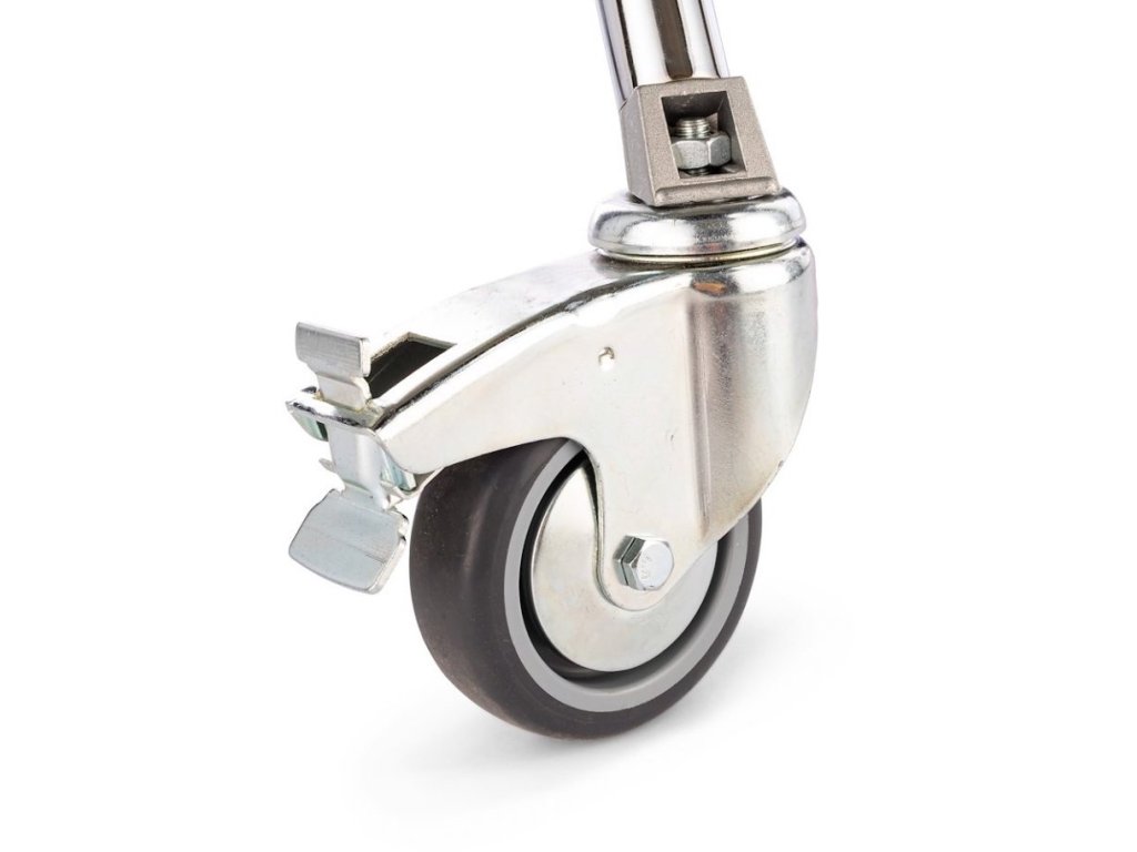 Ten statyw ze stali chromowanej ma 3 sekcje. Jest wyposażony w zwijaną rączkę, 1 poziomującą stopkę i hamowane koła. Ma maksymalny udźwig 30 kg i może być również podniesiony na wysokość 2,96 m.