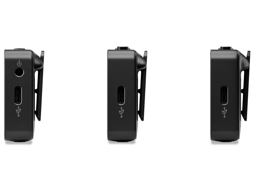 Złącze USB-C służy do ładowania lub połączenia z aplikacją RØDE Central. W niej można dokonywać ustawień nadajnika i pobierać nagrania dźwiękowe do dalszego wykorzystania lub archiwizacji.