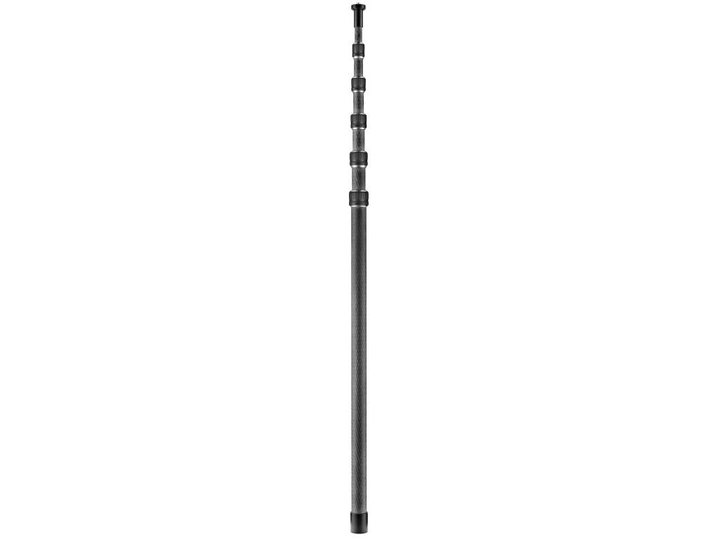 Średnie ramię przedłużające wykonane jest z wysokiej jakości włókna węglowego, które gwarantuje maksymalną sztywność i ekstremalną lekkość. Dzięki czterem sekcjom osiąga maksymalną wysokość 4,7 metra, a po całkowitym złożeniu ma zaledwie 103 cm długości, co ułatwia wykonywanie zdjęć 360°. W swoim maksymalnym pionowym wysunięciu z łatwością uniesie 2 kg. Szczyt podstawy ma wymienną śrubę, którą można łatwo odkręcić i obrócić, dzięki czemu jest szybko dostępny dla aparatów i akcesoriów z gwintami 1/4" i 3/8". Dzięki gumowemu uchwytowi jego mocne i niezawodne zamki obrotowe są łatwe w obsłudze i gwarantują maksymalną wytrzymałość po wysunięciu tyczki.