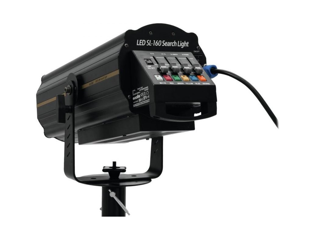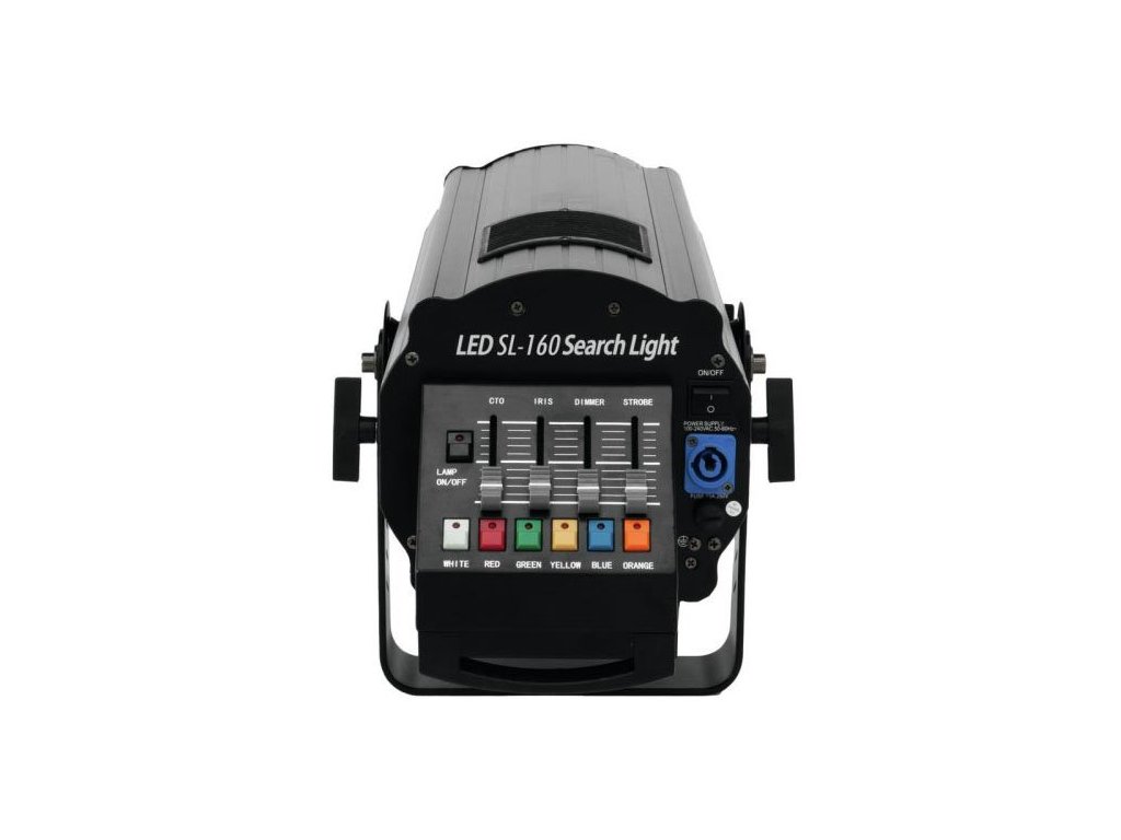 Profesjonalny reflektor kierunkowy LED wyposażony w niezwykle wydajną diodę COB LED o mocy 160W. Odpowiedni do oświetlenia na odległość do 30 metrów. Przejrzysty panel sterowania z przyciskami do wyboru kolorów i potencjometrami suwakowymi do ustawiania parametrów funkcji reflektora. Pięć podstawowych kolorów dichroicznych + biały (czerwony, zielony, żółty, niebieski i pomarańczowy), efekt Strobo z regulowaną prędkością błysków (1-20 błysków/sek.), filtry korekcyjne CTO (3200K, 4500K i 5600K), płynnie regulowana przysłona Iris (od 5-100%), funkcja ściemniania (płynna regulacja jasności w zakresie od 0% do 100%) i ręczne ustawianie ostrości. Uchwyt do montażu na statywie, impulsowy zasilacz, zasilanie za pomocą złącza Neutrik PowerCon.