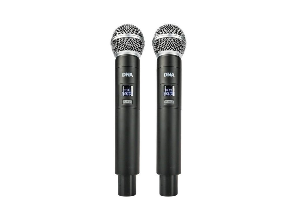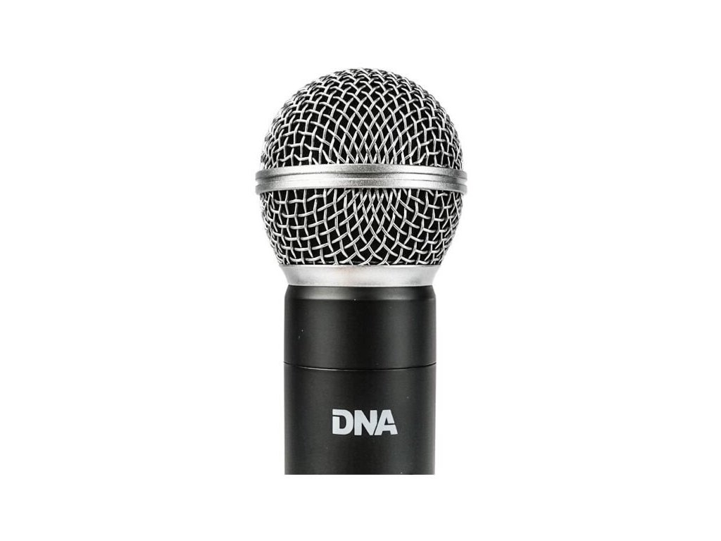 DNA WM4 VOCAL HEAD SET MIX to profesjonalny bezprzewodowy system mikrofonowy, który zawiera dwa bezprzewodowe, ręczne mikrofony dynamiczne, dwa bezprzewodowe nagłowne mikrofony dynamiczne z nadajnikami bodypack i stację bazową z kolorowym wyświetlaczem LCD, która jest kompaktowym odbiornikiem UHF.