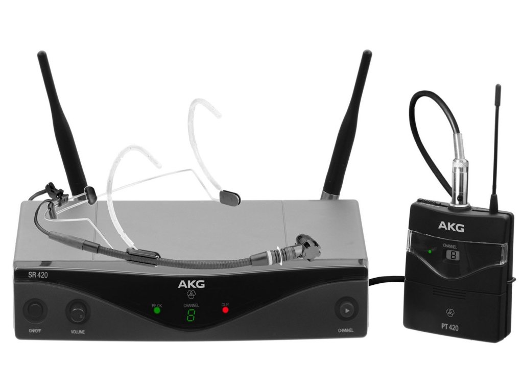Cała seria została zaprojektowana z naciskiem na maksymalną elastyczność i łatwość użytkowania. Podstawą każdego zestawu jest stacjonarny 8-kanałowy odbiornik AKG SR420 wyposażony w odłączane anteny, co umożliwia podłączenie profesjonalnych akcesoriów (rozdzielacze antenowe, anteny kierunkowe dla systemów wielokanałowych i inne opcjonalne akcesoria). Nie brakuje tu wskaźnika połączenia RF i zniekształcenia sygnału, jak również wyświetlania kanału transmisji i elementarnej możliwości regulacji głośności. Każdy odbiornik jest ustawiony na odpowiednie pasmo (A: 530,025 do 559,000 MHz; U1: 606,100 do 613,900 MHz; U2: 614,100 do 629,900) MHz; B1: 748,100 do 751,900 MHz; B2: 774,100 do 777,900 MHz; M: 826,300 do 831,000 MHz; D: 863,100 do 864,900 MHz; K: 925,100 do 931,850 MHz), w ramach którego można wykorzystać do 8 kanałów jednocześnie. Dostępne jest symetryczne wyjście XLR lub niesymetryczne ¼“ jack. Kolejnym ważnym komponentem serii jest nadajnik Bodypack PT420, który potrafi przesyłać zarówno sygnały instrumentalne (Instrument Set), jak i umożliwia podłączenie wszystkich dostępnych „mikro” mikrofonów AKG (w ramach serii do wyboru jest mikrofon krawatowy C417 L lub nagłowny C555 L). Bodypack jest zasilany dwiema bateriami AA, których żywotność wynosi ok. 8h, model PT420 jest nowo wyposażony w zintegrowane styki do ładowania wewnętrznych baterii, do tych celów można dokupić specjalną stację ładującą CU400, która potrafi bardzo szybko naładować do dwóch bodypacków jednocześnie.