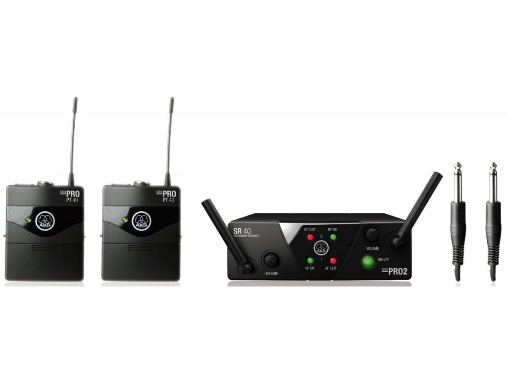 WMS40 MINI2 to bezprzewodowy zestaw narzędziowy marki AKG przeznaczony do gitary, gitary basowej, zestawów słuchawkowych i mikrofonów instrumentalnych. Komplet składa się z dwukanałowego mini odbiornika SR40 Dual, dwóch mini nadajników body-pack PT40 i pracuje na częstotliwościach przesyłowych 537,9 MHz i 540,4 MHz. Sprawdzi się wszędzie tam, gdzie stawia się wysokie wymagania co do szybkości obsługi i maksymalnej czystości dźwięku. Zapewnia ją technologia HDAP (High Definition Audio Performance). Minimalna liczba elementów sterujących umożliwia łatwe uruchomienie całego systemu, a ultra kompaktowe wymiary i niska waga nadajnika gwarantują użytkownikowi nieograniczoną mobilność.