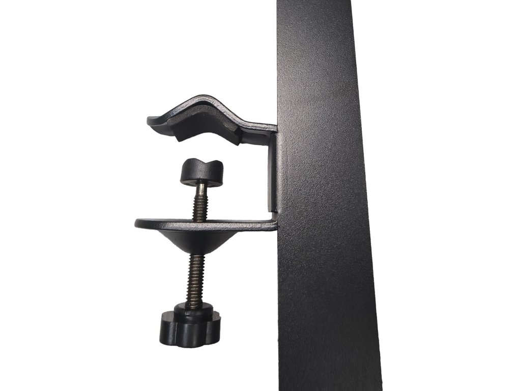 Konstrukcja z wytrzymałej stali zapewnia długą żywotność i stabilność nawet przy częstym użytkowaniu. Uchwyt uniesie do 1 kg, a jego niska waga 0,25 kg ułatwia manipulację. Uniwersalny system mocowania umożliwia łatwe przymocowanie do większości standardowych rur statywowych.