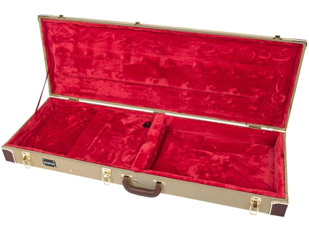 Futerały Razzor oferują w swojej kategorii cenowej ponadstandardową ochronę dla Twojego instrumentu. Wykonane są z pięciowarstwowej sklejki pokrytej tkaniną tweedową, dzięki czemu cenny ładunek wewnątrz jest bezpieczny – niezależnie od tego, czy jest to zła pogoda, nieprofesjonalny transport, czy niezdarni koledzy z zespołu. Wewnętrzne mocowanie szyi dodatkowo utrzymuje instrument w stabilnej pozycji w każdych okolicznościach. Zadowoli również schowek na najpotrzebniejsze akcesoria i zamek na klucz.