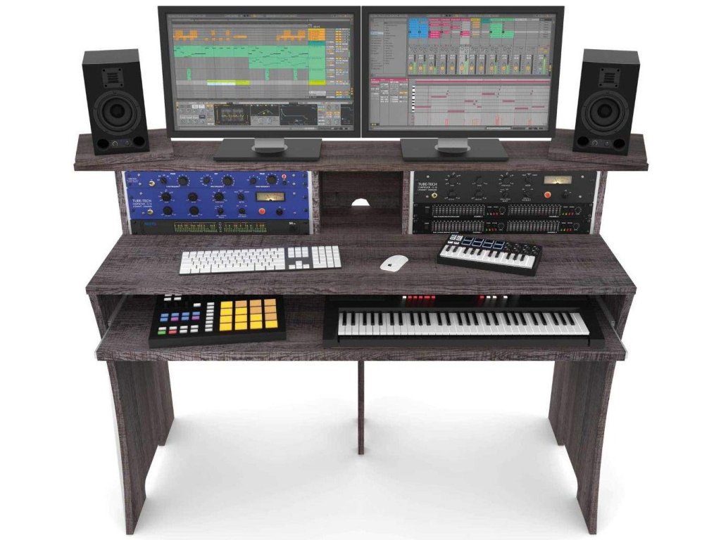 Workbench to idealne stanowisko pracy dla studiów projektowych i domowych, dzięki któremu produkcja muzyczna pójdzie Ci całkowicie sama. Wyróżnia się solidną, drewnianą konstrukcją, która kładzie nacisk na ergonomię podczas pracy z aplikacjami muzycznymi i inteligentne wykorzystanie przestrzeni. Nie brakuje w nim wysuwanej podkładki pod klawisze, obrotowych stojaków na monitory odsłuchowe lub 2 dziewiętnastocalowych racków do instalacji różnego interfejsu.
