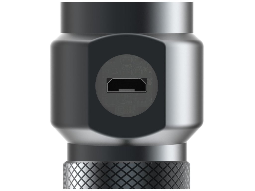- Korpus latarki (rękojeść), 4 wymienne głowice, akumulator 18650, adapter USB, kabel micro USB