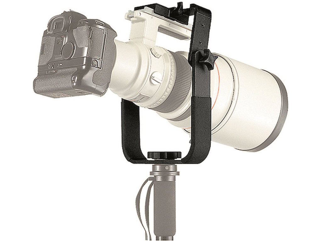 Uchwyt do monopodu, specjalnie zaprojektowany do użytku z bardzo długimi obiektywami. Wyposażony w podstawę cierną, która umożliwia obracanie uchwytu na monopodzie, może być również używany na statywie. Dwa gumowe uchwyty oraz gumowa ochrona zapobiegająca uszkodzeniu obiektywu przy maksymalnym nachyleniu. Zmienna regulacja wysokości środka w trzech krokach.