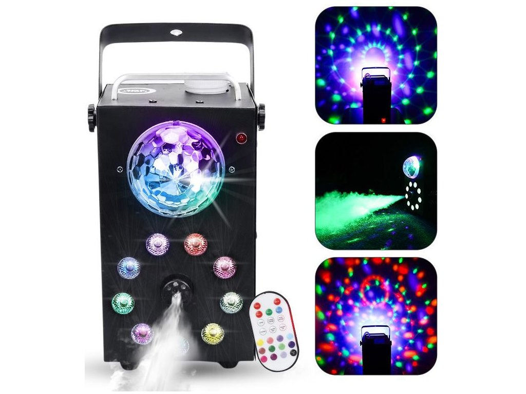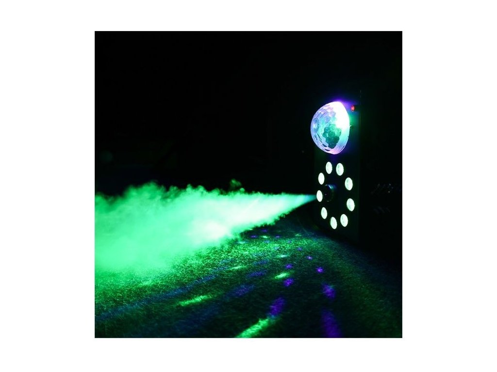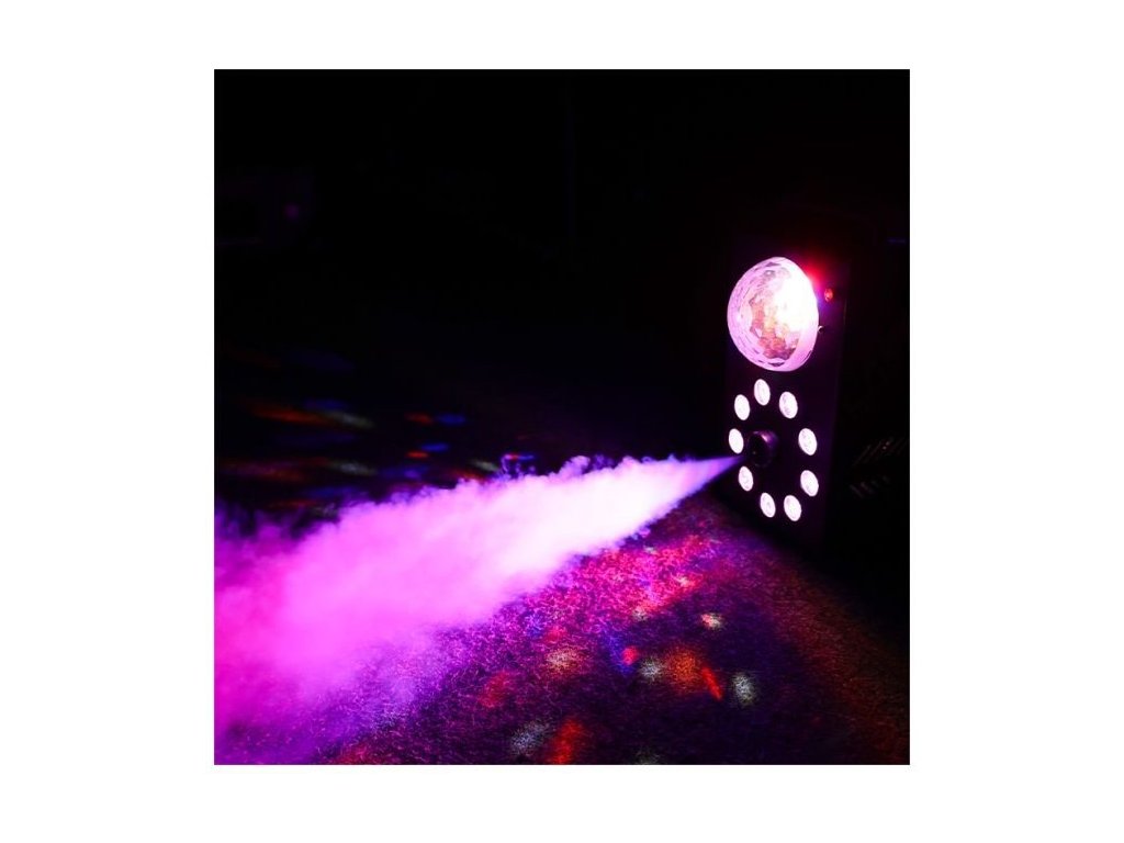 Wytwornica dymu Light4Me Party Fog jest wyposażona w 9 diod RGB LED i 6 dodatkowych diod monochromatycznych, dzięki czemu możliwości tworzenia efektów świetlnych za pomocą tej wytwornicy są bardzo szerokie. Dodatkowo oświetlenie można zmieniać stopniowo, płynnie lub w sposób pulsacyjny, a wbudowany tryb Magic Ball pozwala tworzyć spektakularne efekty kuli dyskotekowej.