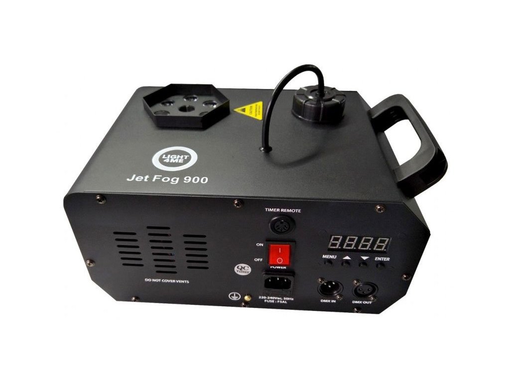 LIGHT4ME JET 900 LED to profesjonalny, pionowy generator dymu (wytwornica mgły) z możliwością sterowania za pomocą bezprzewodowego pilota (IR), który jest wyposażony w system dziewięciu wydajnych diod LED o mocy 3 W, których zadaniem jest oświetlanie wydobywającej się pary. W ten sposób pionowa kolumna dymu tworzy niesamowity efekt wizualny, który świetnie wygląda na scenie, w klubach tanecznych i dyskotekach oraz podczas wszelkiego rodzaju imprez okolicznościowych, takich jak wesela, bankiety, bale i osiemnastki.